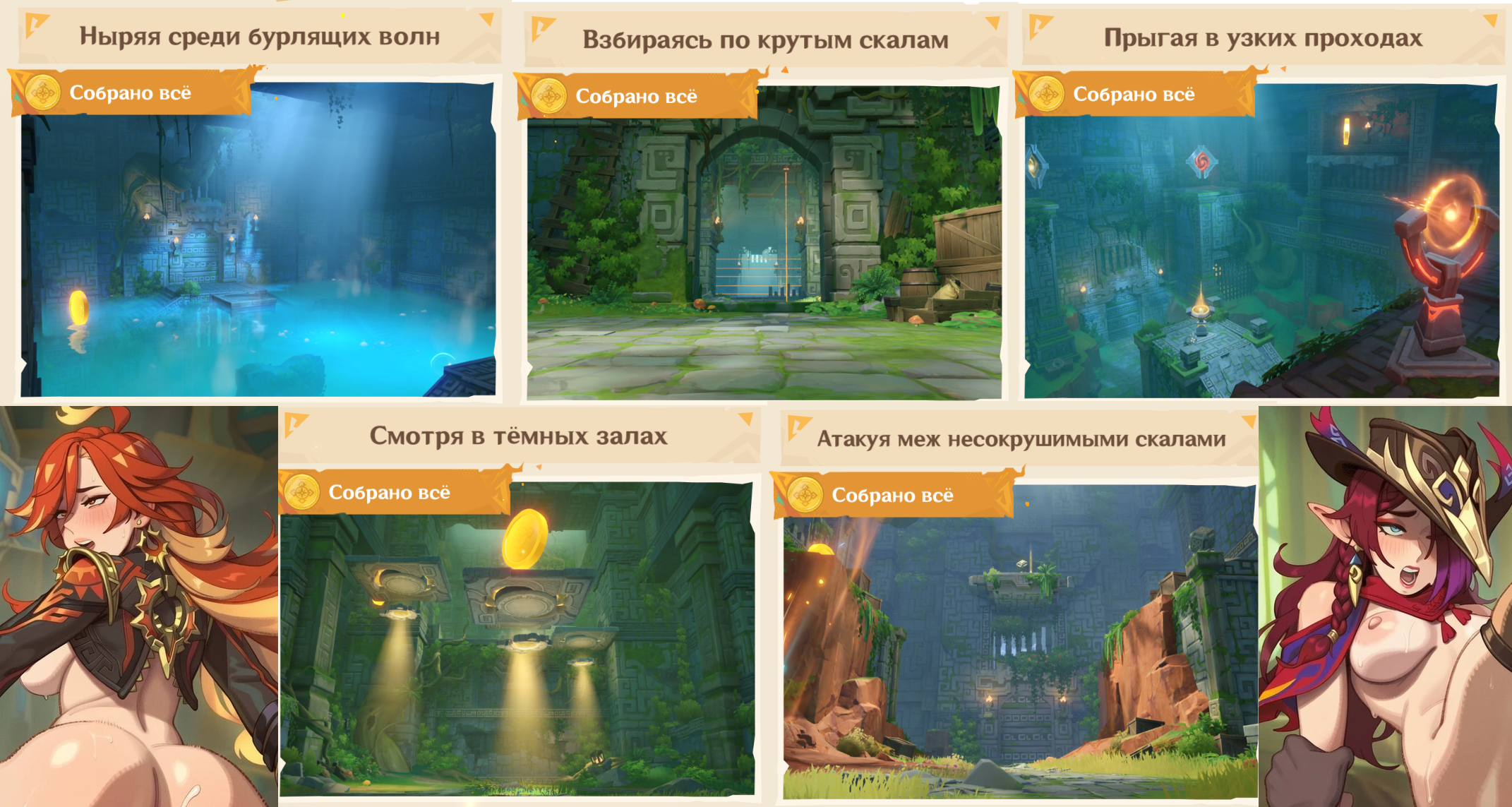 Встреча в Монде ищём вместе с Дионой кошечек которые убежали из кафе Встреча в ЛиЮэ ищём клад с Бейдоу Встреча в Инадзуме день из жизни Куки и банди идиотов Встреча в Сумеру семья Фуразан никогда не оставляла надежду что она вернётся домой.