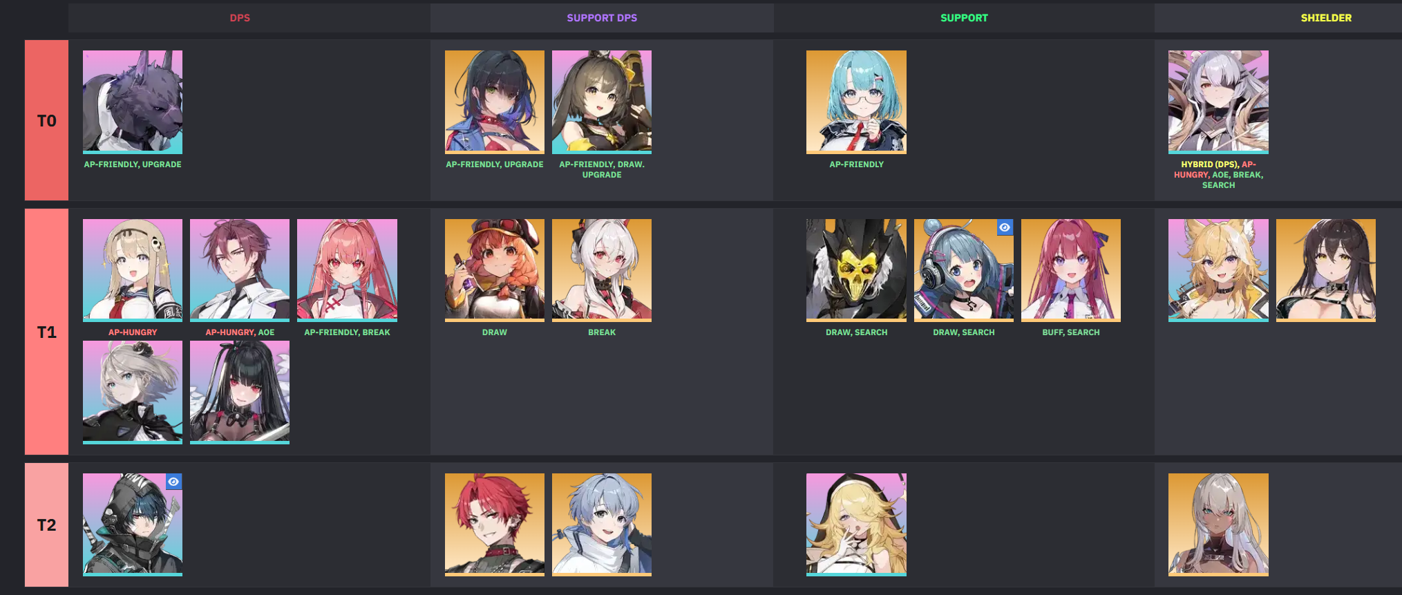>>5812931 Зависит от того какие у кого карты. Сами персонажи это заготовки. Если советовать просто так, то можно попробовать собрать моно элементы. Войд и огонь у вас уже вроде готовые.