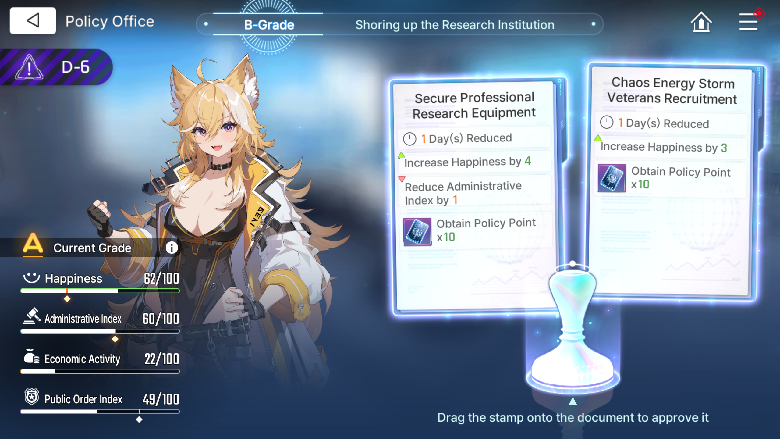 >>5818293 Я ещё не тестил, но чисто теоретически, персонажа отвечающего за самый меньший стат(тут это happines) вообще можно не ставить и закидывать двух персонажей для самой длинной полоски(у тебя order) и получается раскладка не 1/1/1, а 1/2. Порог счастья убить ниже 30 будет тяжело + бывают проки в него с других контрактов