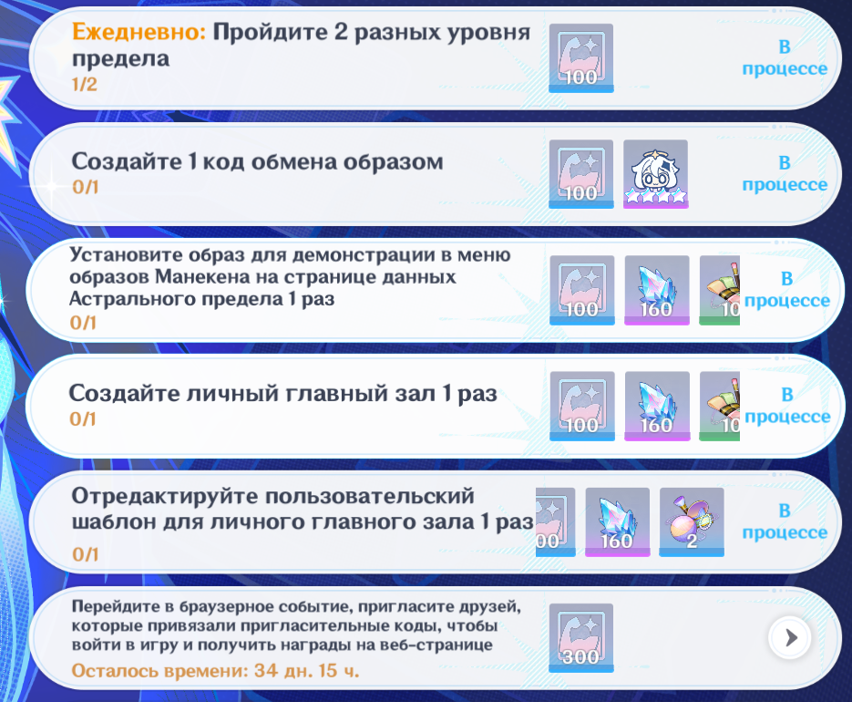 >>5813399 2. Ну пару часов может где-то. Не столько потому что долго само по себе, сколько долго разбираться с этим всем. Тысяча менюшек, кнопочек, пунктиков, едва ли не больше, чем в основном геншине. Тебе всё равно придётся закрывать местный БП и его временные аналоги, иначе качать предел выйдет слишком долго. Рекомендую тупо забивать в поисковик вызывающие трудности пункты, на вотпаке уже вышли гайды по закрытию их всех, довольно подробные и со скриншотами. Правда можешь в недельный кап упереться. Я знаю, что и его преодолевают, но моего энтузиазма так глубоко лезть не хватило. 3. Да, вбиваешь в поиск fast/xp/quick и тому подобные запросы, там односекундные автовины. Но один абузить не получится, придётся разные для закрытия всяких пунктов "посетите 15 пределов".