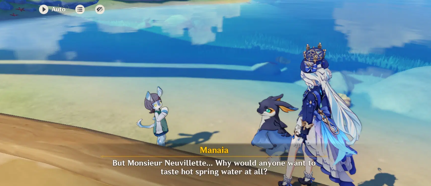 И да, юдекс хоть по сюжету и научился кое-как выражать эмоции и шутить (пусть и странно, люди не понимают), но всё равно остаётся слегка своеобразным. Даже в Натлане что-то было, когда мелюзина пришла к горячим источникам и никак не могла понять напутствие юдекса на тему того, что воду из горячих источников следует пить после того, как она остынет.
