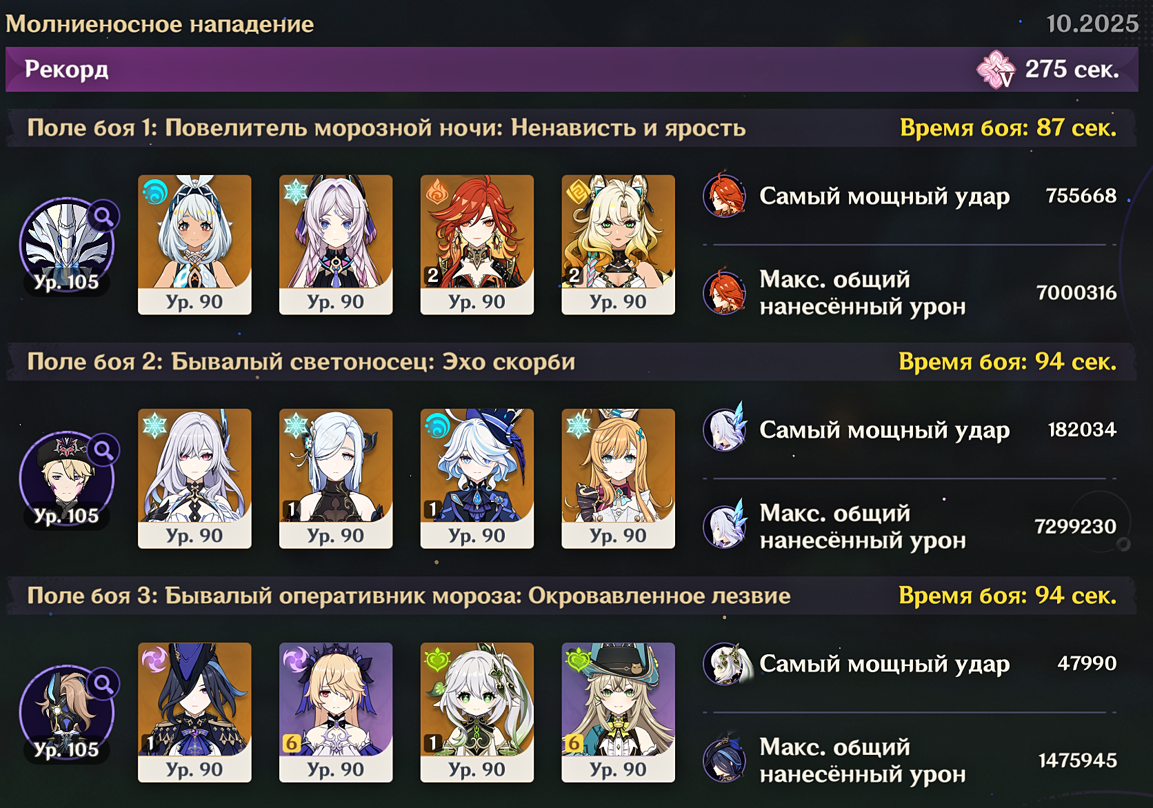 Мда, в этот раз гордиться нечем конечно, как я думал, прошлый ресет был первым и последним, который смог осилить 5 сложность. Ляо пизданулся такие цифры хп выкручить боссам. Если раньше было по 5-6кк, то тут уже под 8кк наху, и кокблоки никуда не делись. В итоге только 4, а 5 вывозит исключительно Ноэль с констосаппами, другим моим пачкам там не хватает ощутимо, даже добавкой 50кв артов не прибивать столько.