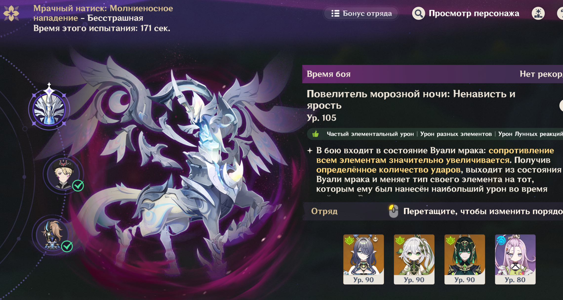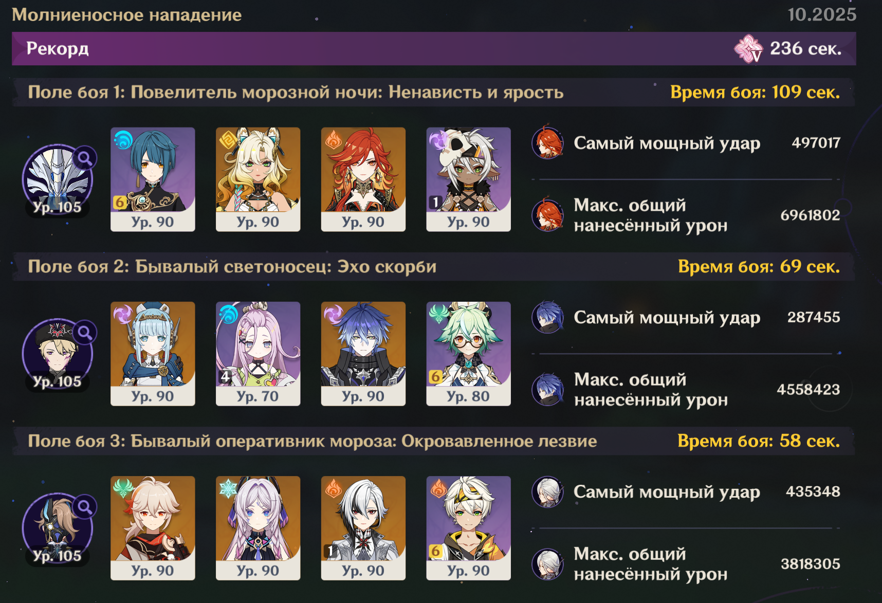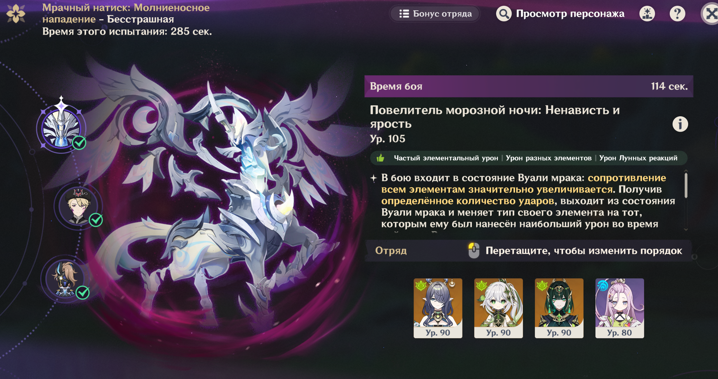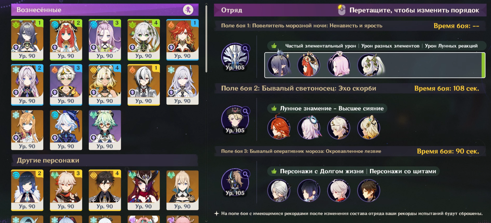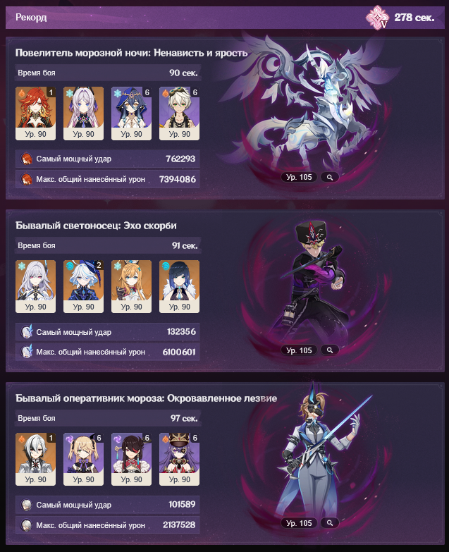 Нэфер короче без Дамзелетки неиграбельна. Ей тупо не хватает воды, а гидровички ее накладывают максимально неудобно, потому что боссы выпрыгивают из зоны наложения. Сынидзе и Елань в пролете из-за требования к атакам. Единственный, кто справляется более-менее - это Фурина, но с ней нет другой синергии, потому что фанфары ничего не дают Нефер да и разгонять их нечем энивей, чисто как гидро-турелька. Барбара росу не копит вообще колечком своим. Ляо гений блять, попилил чарика уже на ДВУХ доп героев без которых нормально не играется.