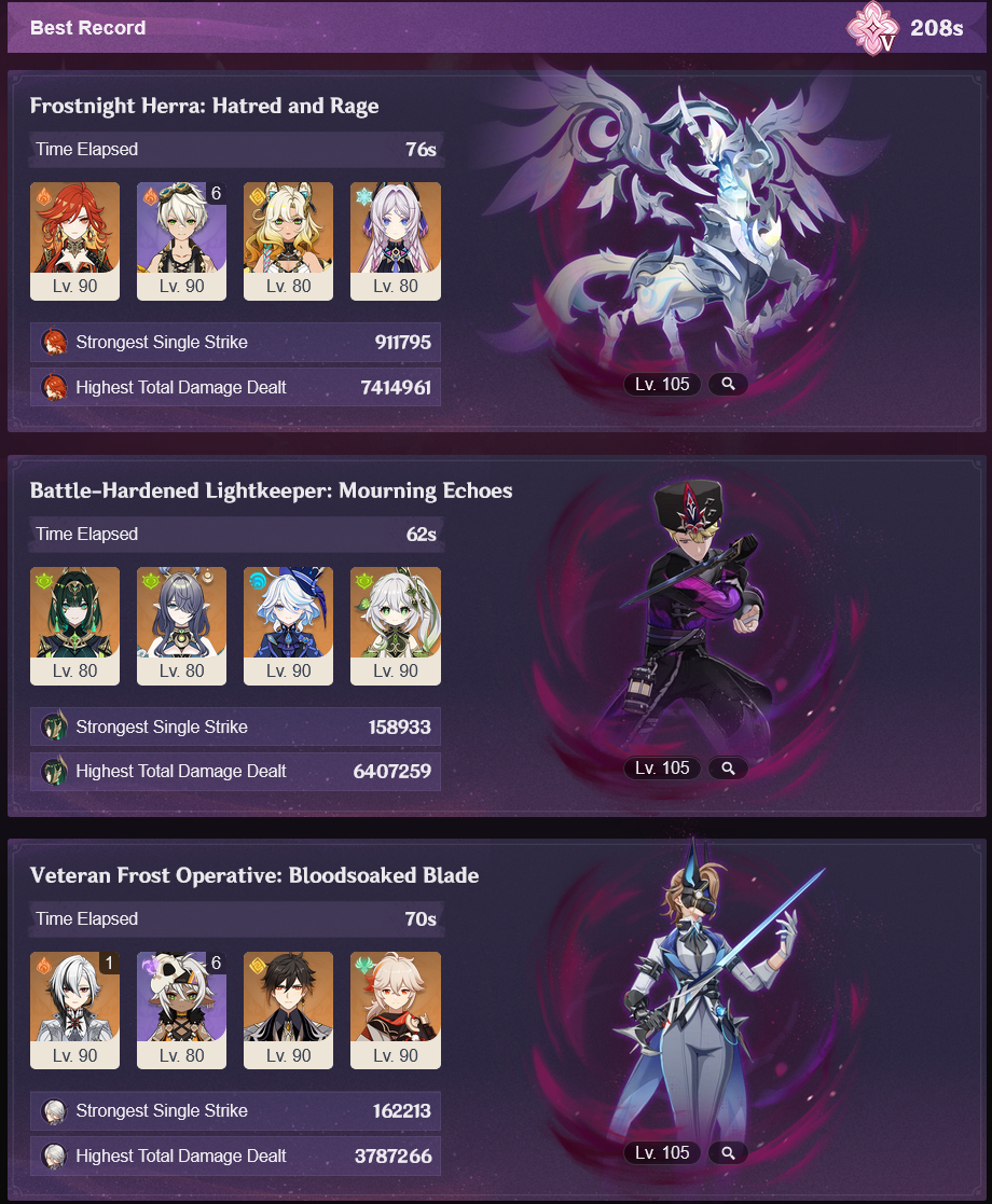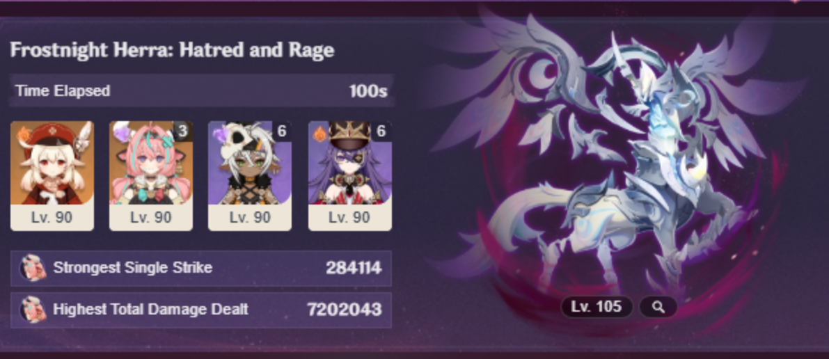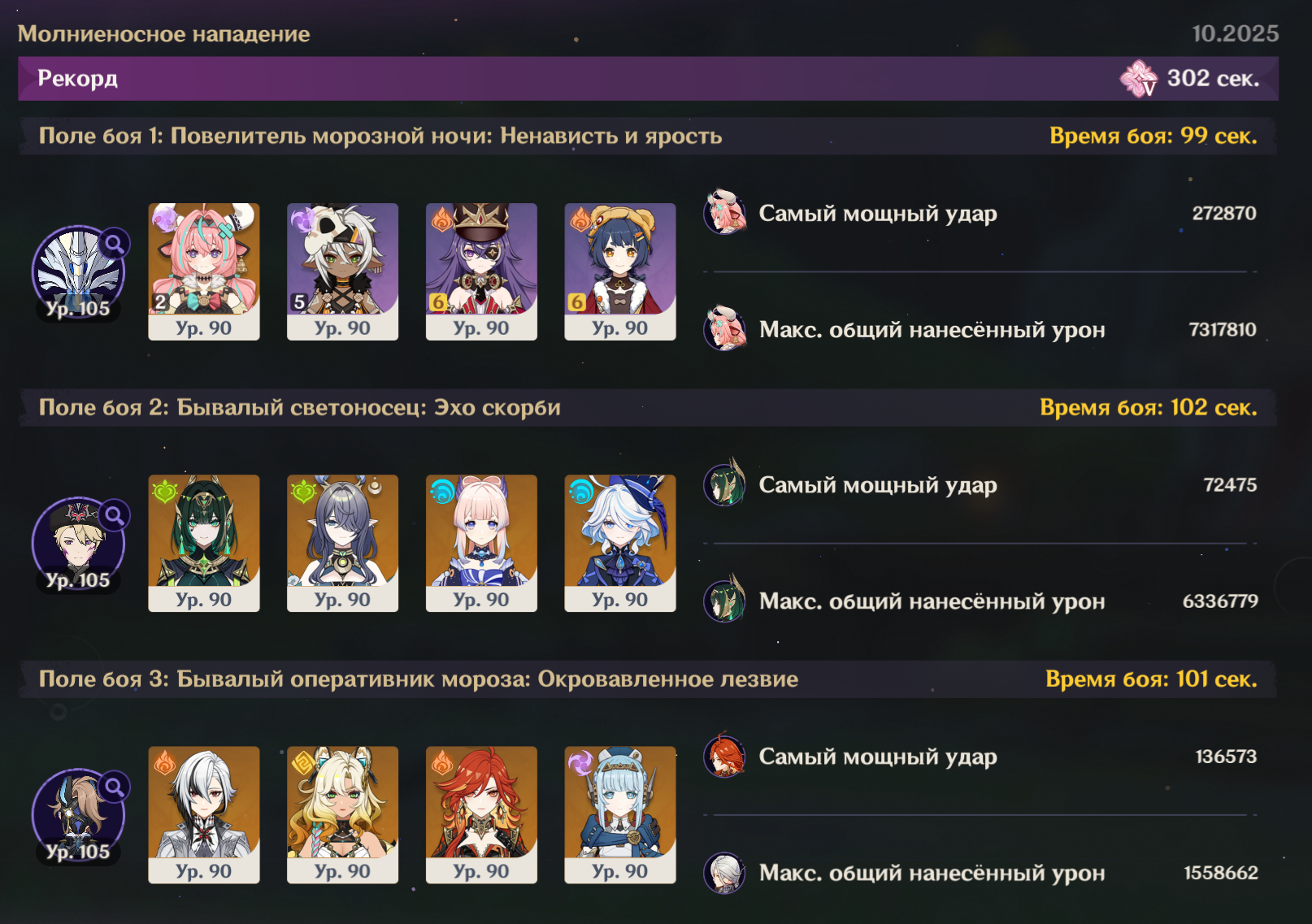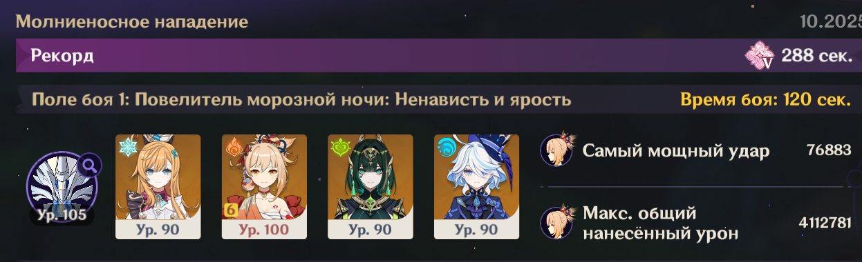 В общем от нечего делать решил попробовать пройти третий Натиск своей соло вайфушкой-четвёркой. Чтобы потом всем в треде хвалится, как же я хорош! Решил начать с конца, выбрал первым боем фатуйку и она очень легко пронеслась, буквально с первого же раза. Ну, подумал я, значит дальше также просто будет... Но второй мой соперник, этот хер в меховой шапке, он просто меня унижал. И мне то времени не хватает, то он просто выносит меня с нескольких тычек, под которые мне не везло попадать, в общем тяжело было. Особенно сливаться от случайного урона после пяти минут прохождения - такое было часто.