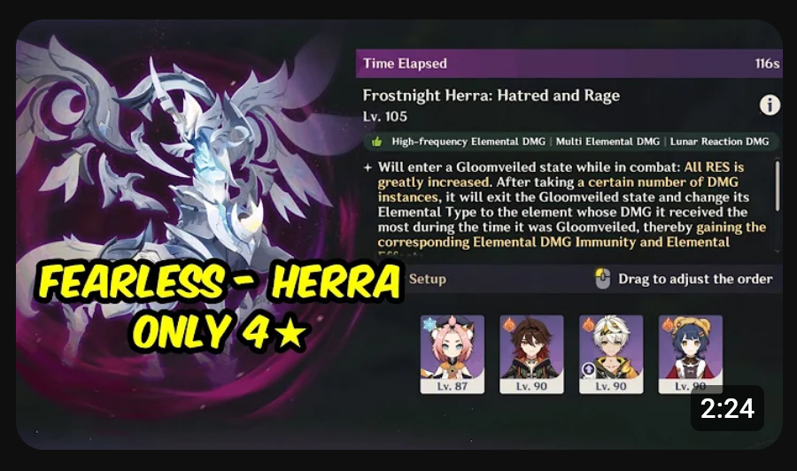 Слабо ебете. Нужно каждому боссу выдать резисты против неправильного урона. Механику, которую правильными персами нужно набивать две минуты. И даунфаза на 10 секунд для бурста правильным персонажем, которые правильно бафают делатели механики. Краб был в правильном направлении, но в целом это лишь 0.25 от олдовой базы.
