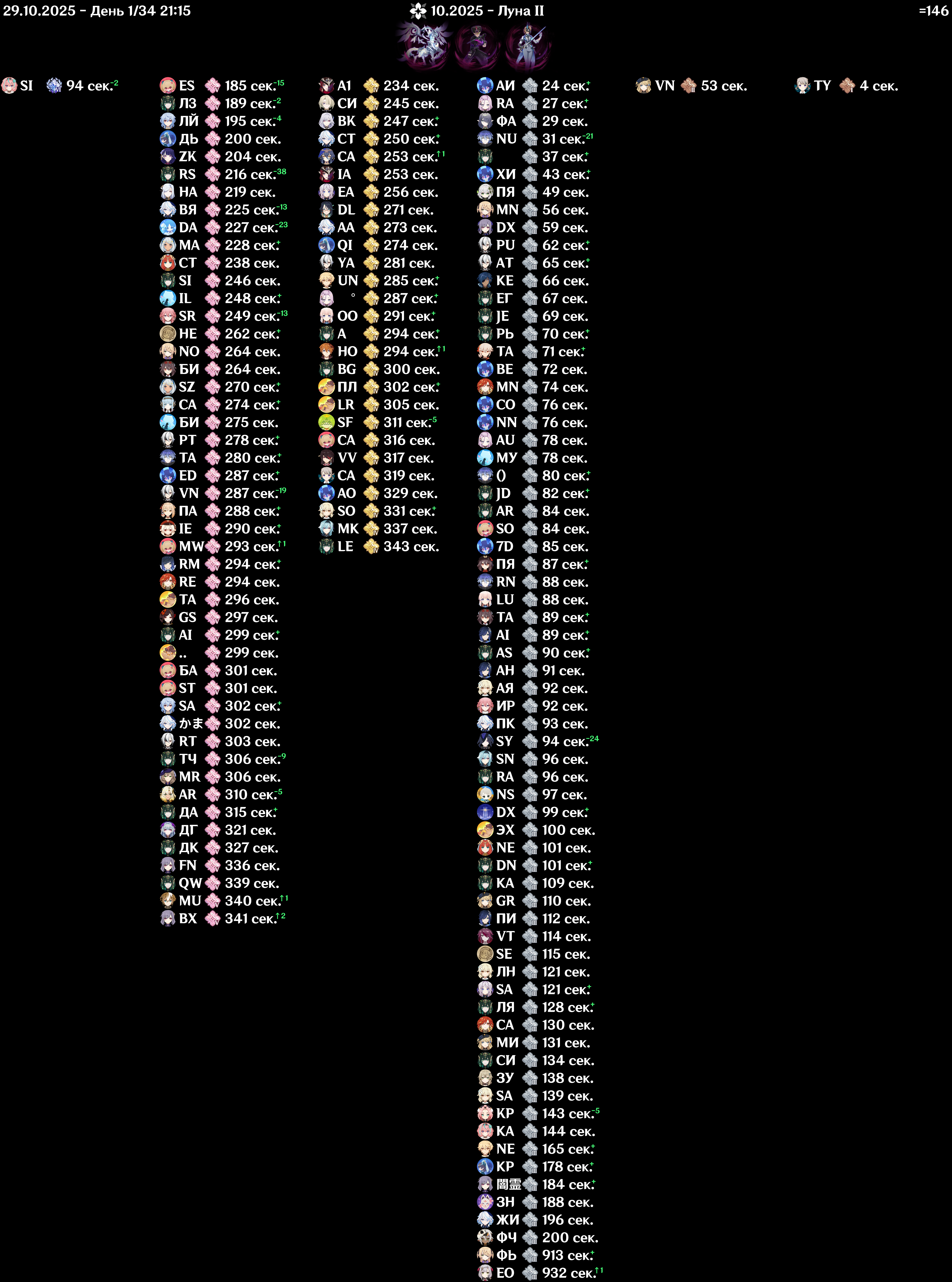 >>5815680 Как же Неферка с Нилочкой ебут! А вообще грустненько. У меня первый забег был на 274 сек, и только к концу дня я до 191 сек дошел. Уже врятли смогу сделать крутой камбэк с 50+ сек разницей таймеров
