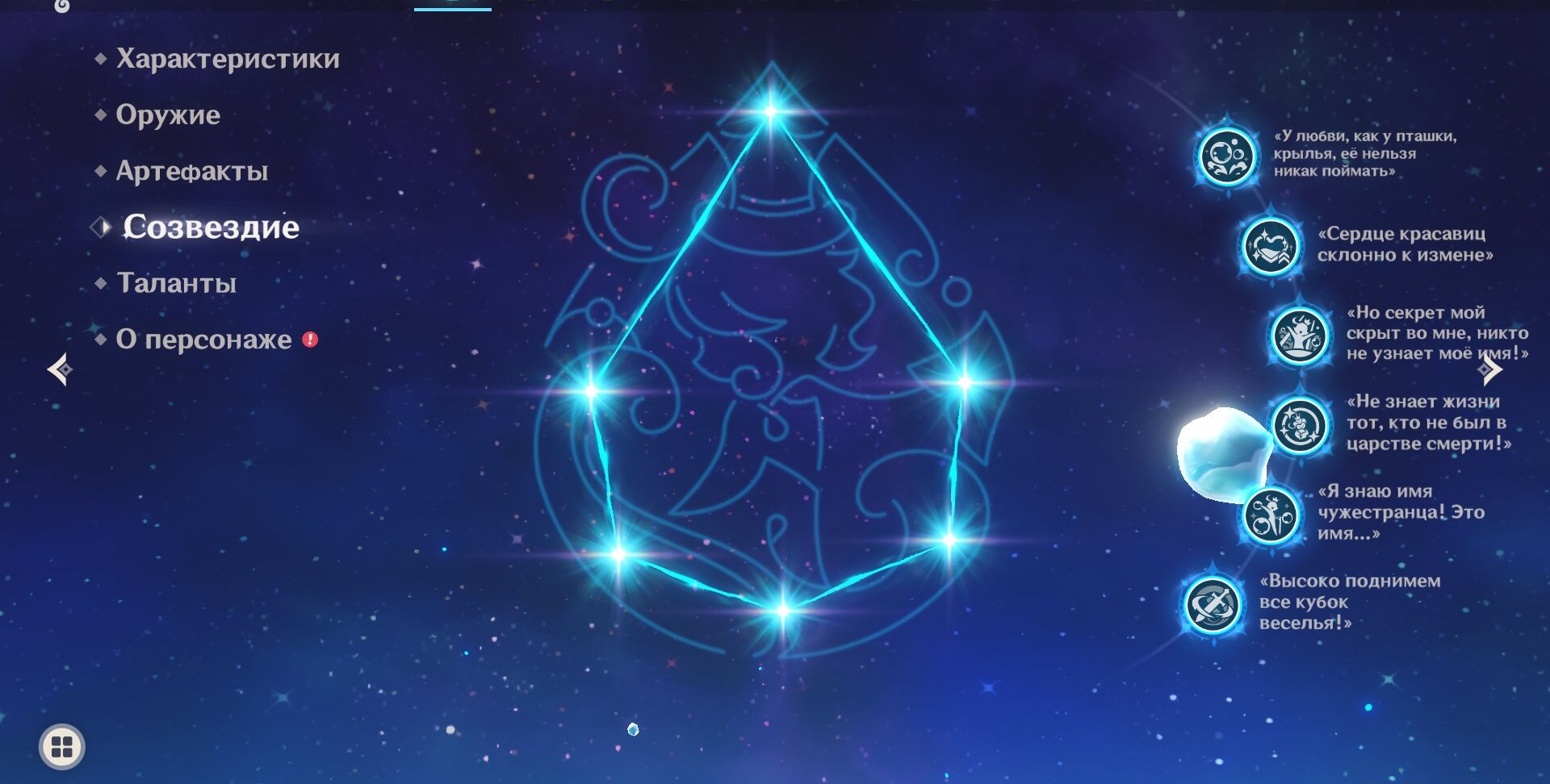 Эфириалы рванули к сцене, но скованная невидимой силой, Йидхари не могла пошевелиться. Когда эфириал вырвал альбом из её рук, страницы начали перелистываться в воздухе и остановились на портрете пианистки.