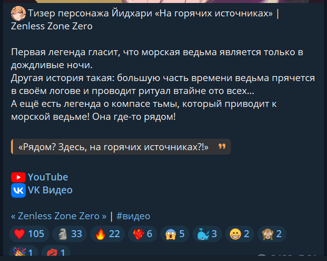 🐙 Тизер персонажа Йидхари «На горячих источниках» | Zenless Zone Zero