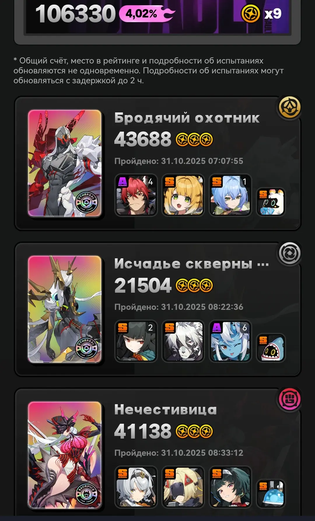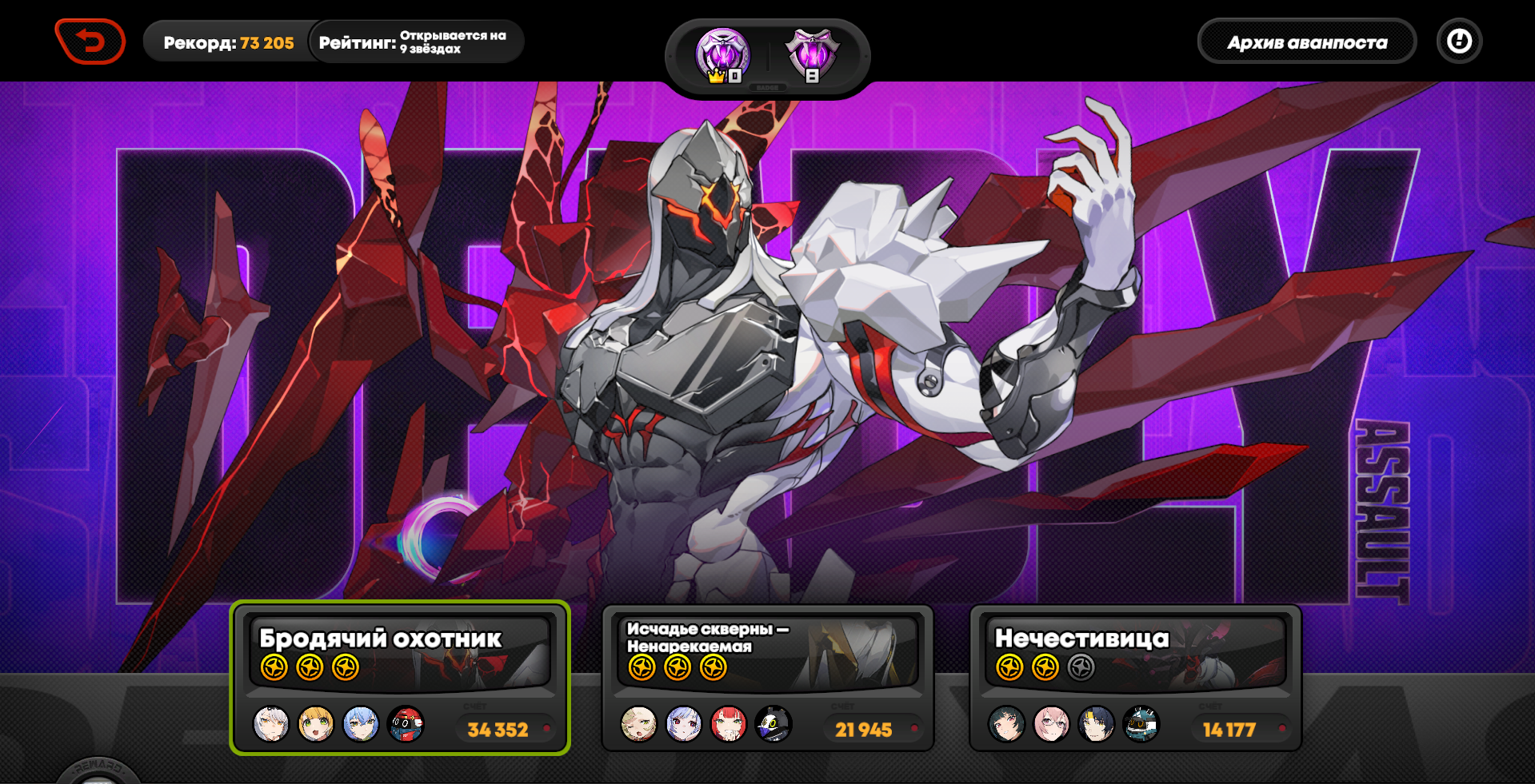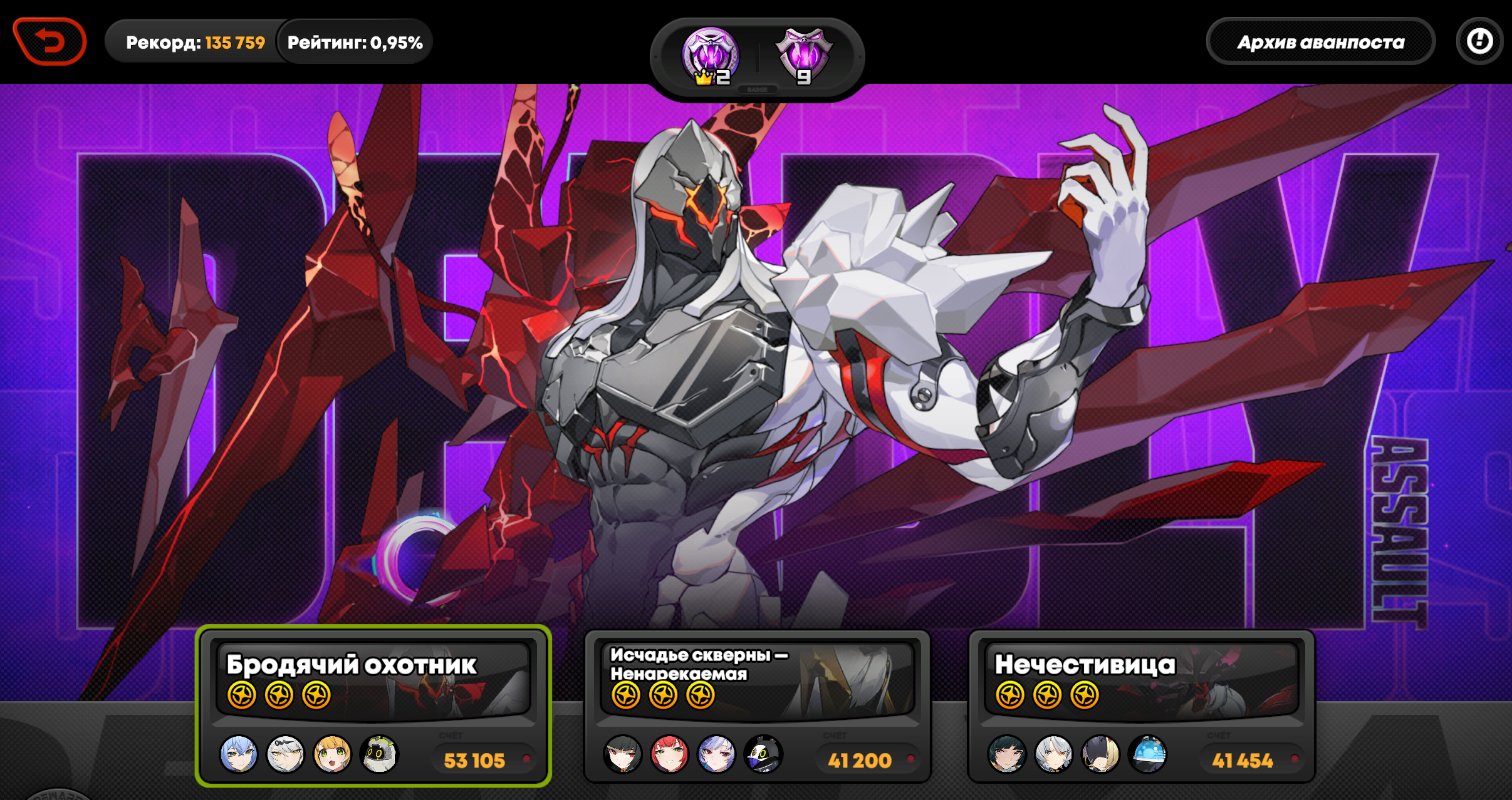 Все проходки что там выше были на Охотнике с Миябом 36к с Бернис+Юзуха, 30к с Астра+Николь делал на такой. Не знаю что будет если убрать диски на пенетру, но думаю будет супер хуево, учитывая сколько дефа у Охотника.
