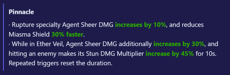 Banyue Basic Attack Wrath Unleashed now can only be cast once per battle and only when over 50% HP HP consumption of Wrath Unleashed 30% --> 50% Activation Condition for Cliff Opener 1 Anger Point --> 120 Rage Now exits Wrath after Cliff Opener Cliff Opener Enhanced now only need 2 different EX Specials, and no longer consumes Anger Point All EX Special MVs nerfed Chain Attack and Ultimate will now activate Wrath if Rage is above 120 Rage Generation 5/10/5 --> 4/6/4 Max Rage 120 --> 150 Wrath no longer has a duration When entering Wrath, obtain 4 stacks, 1 of which are consumed after each EX Special in place of Adrenaline while generating 10 Adrenaline Additionally get 40% Crit DMG in Wrath Stacking Fire DMG Bonus moved to Additional Ability, replacing the original AA M2 Adrenaline restoration 120 --> 60 M2 additional Adrenaline restore condition changed to when consuming Wrath stacks M2 additional Sheer Force changed to 30% Crit DMG and 20% Fire DMG M2 extra Rage from EX Special 0.2 per Adrenaline consumed --> 20 M4 rage generation speed removed M4 DMG buff now additional apply to Lion's Roar and Cliff Opener Max M6 extra stacks changed to 4 extra Wrath stacks Added text to M6: "Chaining Dodge after EX Special will also generate Inspire"