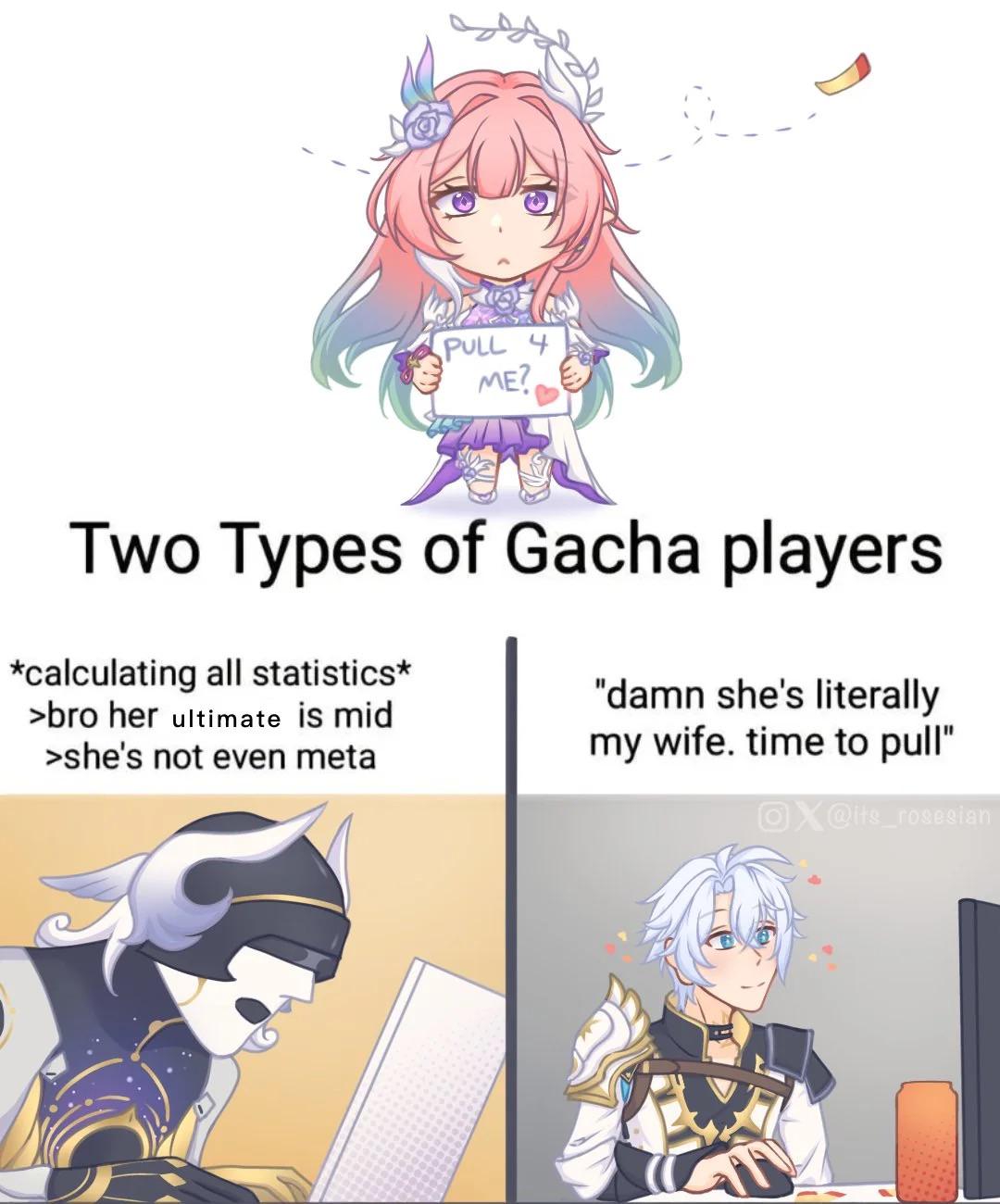 Я не понимаю где люди берут крутки на эйдолоны. Они каждый месяц заносят на 2 бигпака? Я вот весь контент снюхиваю и круток с гулькин хуй - в лучшем случае хватает на нового чарика + сигну (и то, если ляо не подкрутит).