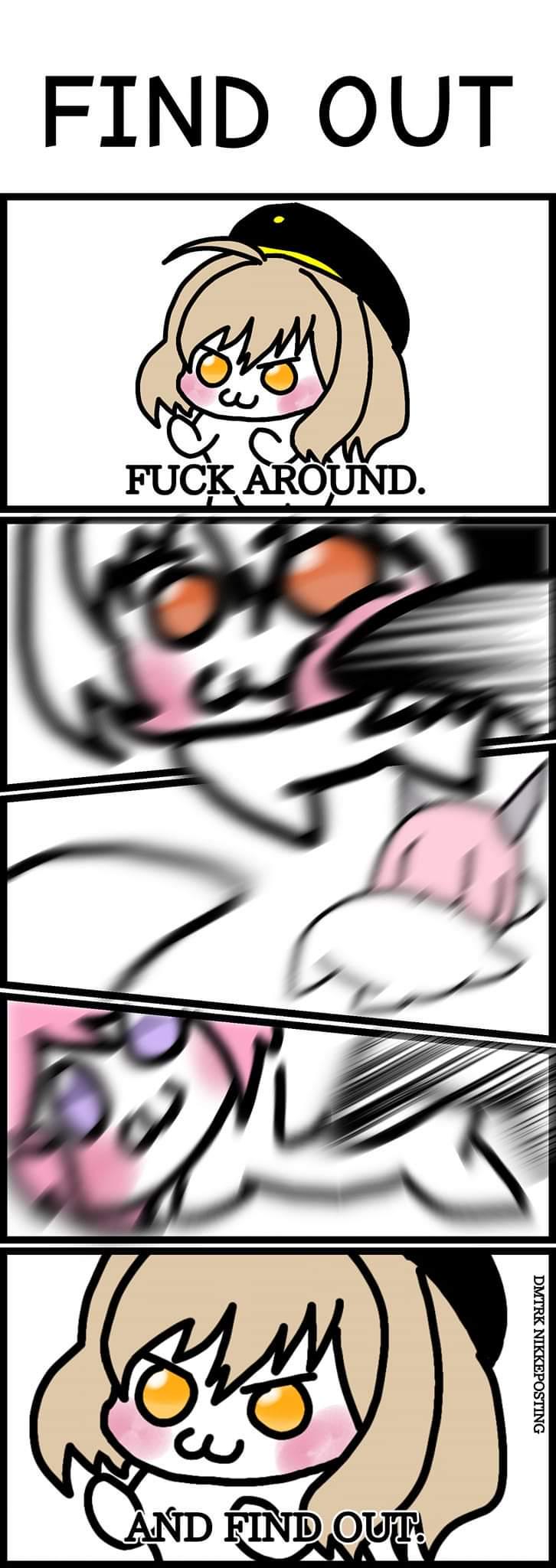 Это бесконечная дрочильня, черная дыра которая съедает твоё время. Нет конца пути. Даже если ты сойдешь - это не конец, ведь ты всё еще видишь что впереди, что ты можешь и должен сделать. Дейлики, виклики, арена, симулейшн рум+оверклок, фарм ресурсов, спаркл эсминцев пидор Ким, JUST KIDDING!. @ Смыть, повторить. @ Ивенты, солорейды, кооп-рейды, юнион рейды, JUST KIDDING!. @ Смыть, повторить. Только полностью оборвав связи с игрой, ты можешь обрести покой. Но и тогда она будет напоминать о себе. Сначала - будешь видеть редкие упоминания вокруг, в вещах, которые не относятся к игре. Потом они начнут появляться всё чаще и чаще, в том числе и реальном мире. Потом они медленно перейдут из реальности в твои сны и даже закрыв глаза и погрузившись в пучину казалось бы спасительного сна ты услышишь: ЩОРИ НО МЕГАМИ! НИККE!