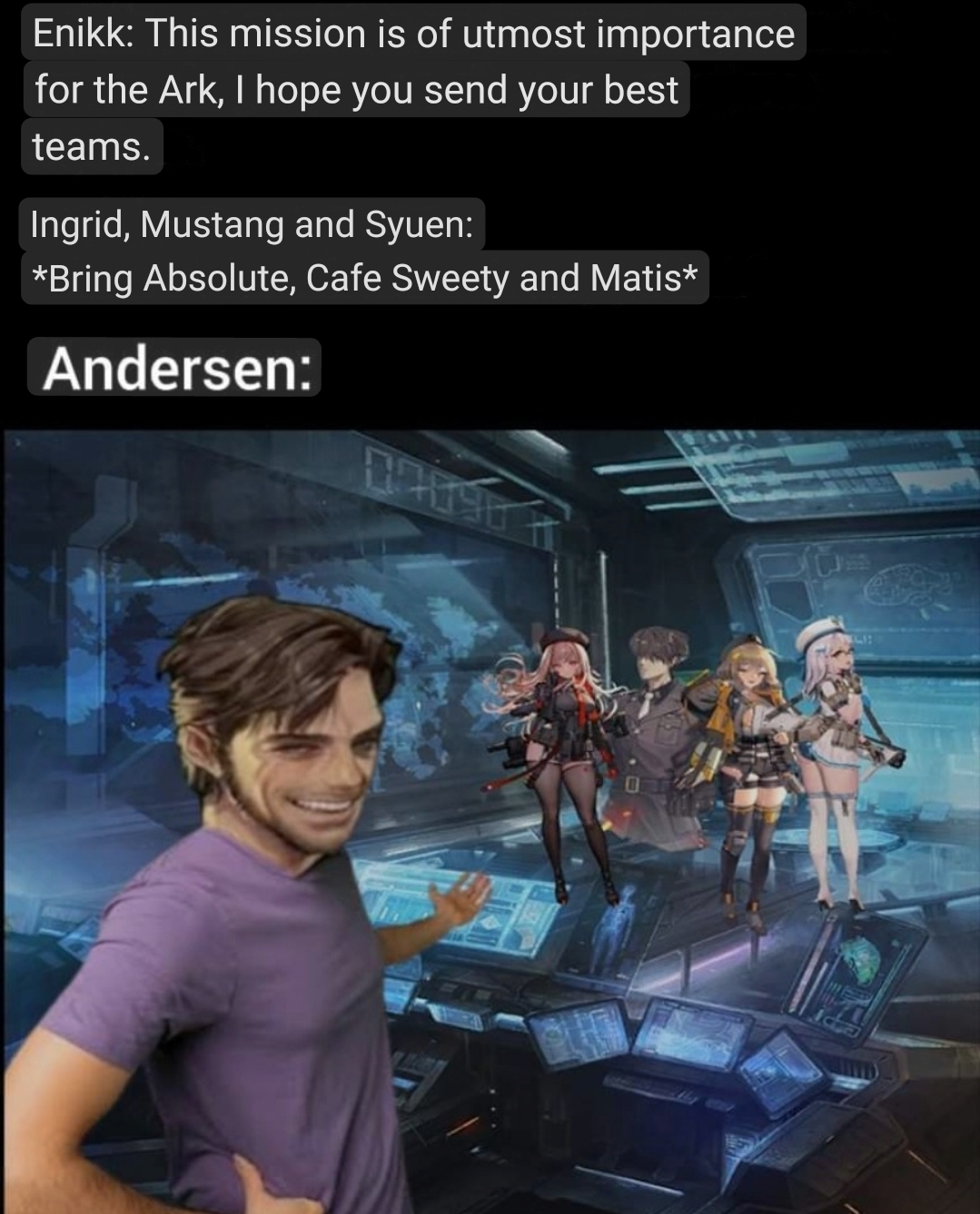 Прочитал мейн стори, как заебала дружбомагия, просто пиздос. Анис выглядит отстойно, в какой-то момент в дизайне жопок появились какие-то феечки, звёздочки, блестяшечки, хуй пойми в какой именно, может когда появились планы на китайцев, не знаю. Сам замес с "королевой" - 5 из 10, арка Анис - 1 из 10, унылейшая хуйня, замет в Аутер Рим - 9 из 10, самое интересное было там, Неон тупо топ, Вайпер, Шакал и ЕХ - крутые жопки, по сюжету всё интересно, замес с Сиксо, эта тварь шнырь-курьер тоже там в тему, встреча Неон с Шуен и Этер очень интригует, здесь кайф, минус баллы Аутер Риму за обсёр в озвучке про Сиксо, в войслайнах это мужик и за МИССИС МИСС, хоть реально свитчиться из англюсика из-за такого нахуй.