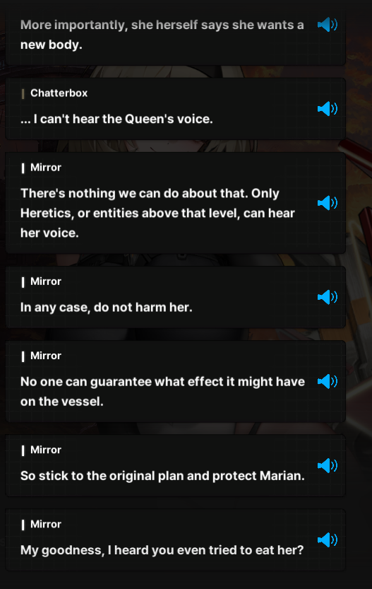 Е.Х. и ее банда террористов хороши. Сама по себе она мне очень нравится личностью, идеями, с которыми я могу согласиться, и охуительным голосом. Закинут крючок для будущего ивента с Сиксо и Андерворлд Квин, а значит, я жду Розотьку. ————————————————————————————————————————————————————————— По ивенту - эпично, сука, зубодробительно. Тот же фансервис, на который накладывается противостояние архиврагу. Король, Марьяна, Годдесс, Инхериты, Еретики... Очень масштабно и круто. Чует мое сердце, флопнется без особых последствий, как обычно, но хочется, ХОЧЕТСЯ надеяться на лучшее.