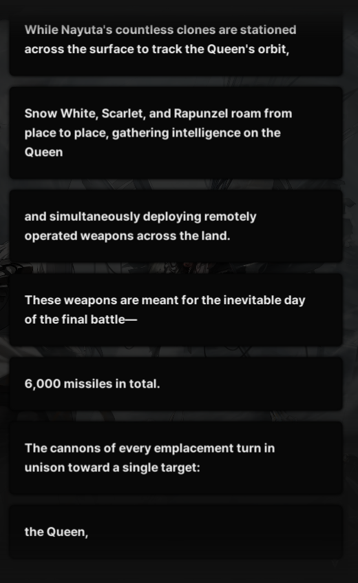 Я чет не понял, новые главы происходят параллельно ивенту? То есть, пока там Инерит насмерть ебашится с Королевой, Индивилла потрошит Мариан, а Наюта призывает теневых клонов, девотьки знакомятся и пьют чаек в избушке на Рекламейшн 1?