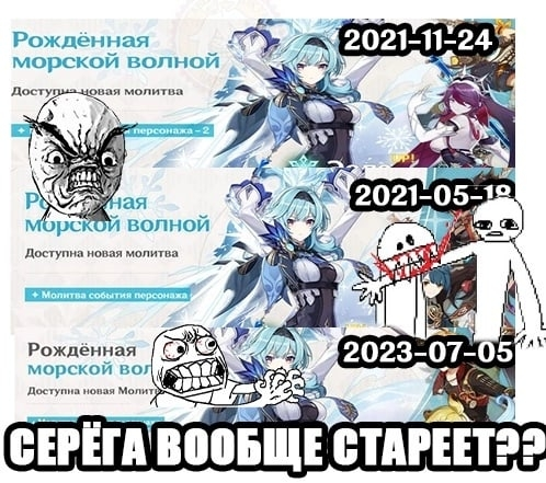 Но ехидная судьба и злая накрутка Ляо НИ РАЗУ не позволили мне получить Мону через стандарт или 50/50. Всегда Чича или пушка, в последний же год начала падать Вжушка.