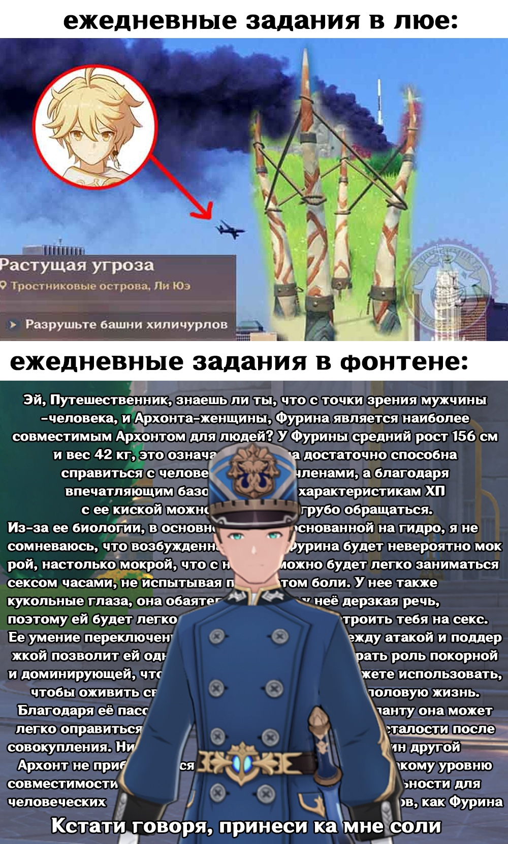 Фонтейн можно было спасти всего лишь одним маленьким штрихом — если бы последней сценой в квесте архонтов была сцена, где Табибита трахает Фурину. Но у Ляо яиц на такое не хватило.