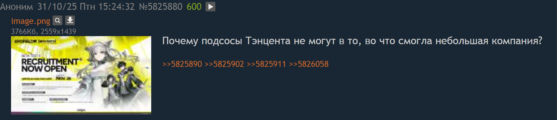 Человек бы такое не придумал. Я серьезно. Как будто модели поставили задачу - придумай нам гачу, но чтоб нитакусиковая была. И вот вышел эндфилд после 30 секунд раздумий китайского ДипСика.