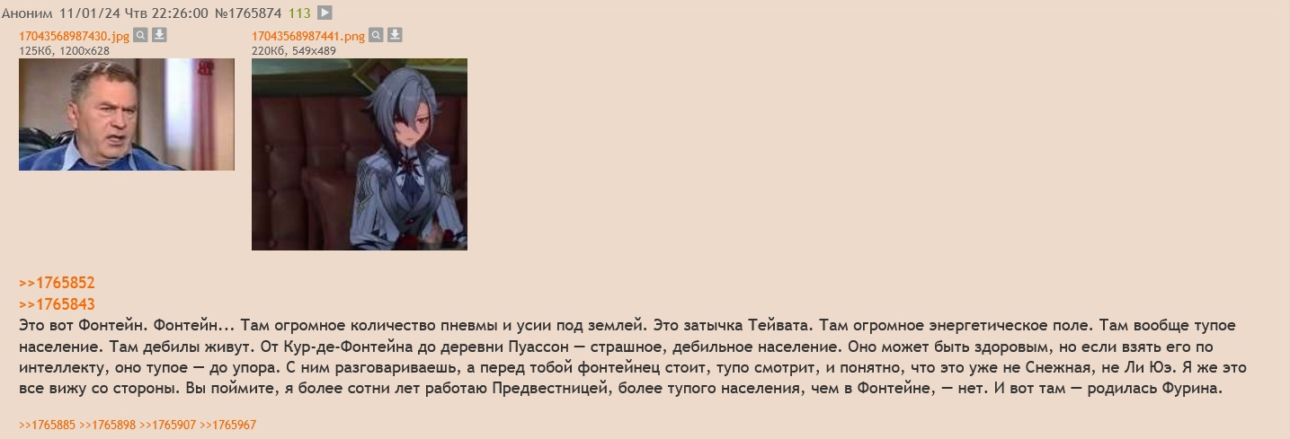 Уже чувствую, что завтрашний театр (который буду проходить только после обновления бездны, чтобы в один день со всей залупой разобраться) даст мощно прикурить. Ну чё там, Нефер с подсосами, Хайтам с подсосами, Коровка с подсосами, Арлекино с подсосами, бесплатный монолит, две бесплатные комнаты для пробных чмонь, в целом, 11 комнат есть, хотя кто будет финального босса убивать и с каким трудом — вопрос острый. Так ещё и для второй арканы босса дрочить кем-то. Хуйня, короче, говно. Может, Кирюху заряженного взять у кого-нибудь повезёт, тогда не так припотно. Но всё равно чёт хуйня будет выходить, чую.