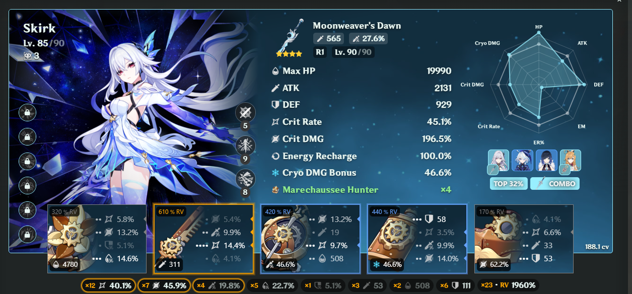 Тредовички Скирк - топ 1 дд и это даже не обсуждается! 1) Во всех надрисках Скирк всегда закрывает свой этаж. 2) Её дпс стабилен как песочные часы! 3) Скирк по лору - гипер имба! ИМХО - она самая совершенная в геншине на данный момент! Есть сеймы?