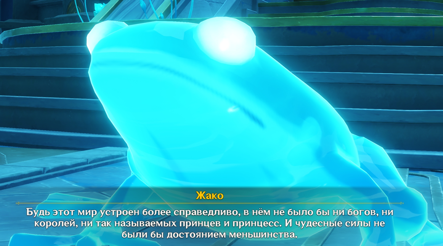 Но вот что делать тем, кому Селестия так и не улыбается? А вот нихуя - ничего не остаётся... Кроме Царицы. Вот она - действительно Архонт базы, потому что даже через силу говна смогла наладить конвейер своих собственных глазок. Да, Глаз Порчи - это хреновое решение, особенно в руках дурочка на вроде Теппея. Но этот Глаз Порчи всё равно в собственной силе позволяет если не сравнится, то хотя бы приблизиться к глазобожникам. И Царица предоставляет подобный шанс - за это безмерное ей уважение. Пусть она и другие цели преследует, но это всё равно позволяет обычным работягам получить то, что в Тейвате доселе было доступно только рандомным избранным.