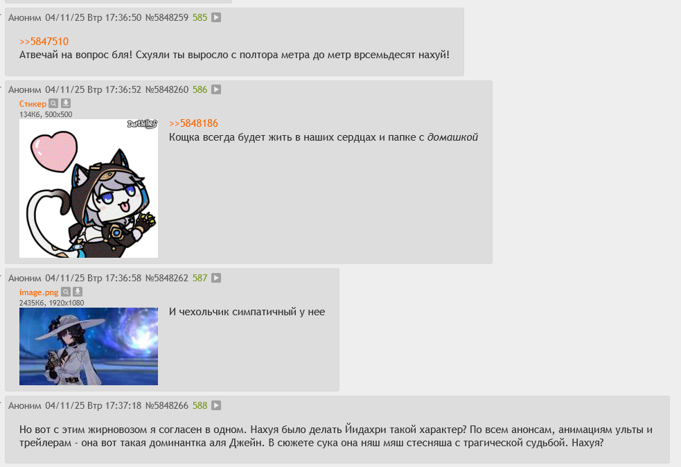 >>5846163 Для гачи норм, среднее анимцо на один раз, просто тебе лично не понравилось, бывает. >пожалейка Вы это слово ставите по поводу и без, но чаще без. Вы будто в жизни не встречали реальных слезодавилок и просто фыркаете как подростки на проявление любых эмоций и сентиментальности, потому что еще не доросли. Так это все по 3 сценки и 3 кадра, которые можно скачать себе на пк и смотреть сколько угодно, представля что они у тебя в комнате на тебя так смотрят. Тут нет открытого мира реального, а то что есть очень куцо и просто твой отыгрыш в голове. Так что твои претензии про "не понимаю зачем, ведь можно лучше" к тебе относятся, мягко говоря, не в последнюю очередь. Если ты готов в такое "говно" играть, мучая себя ради таких мелочей, то и других должен понимать.