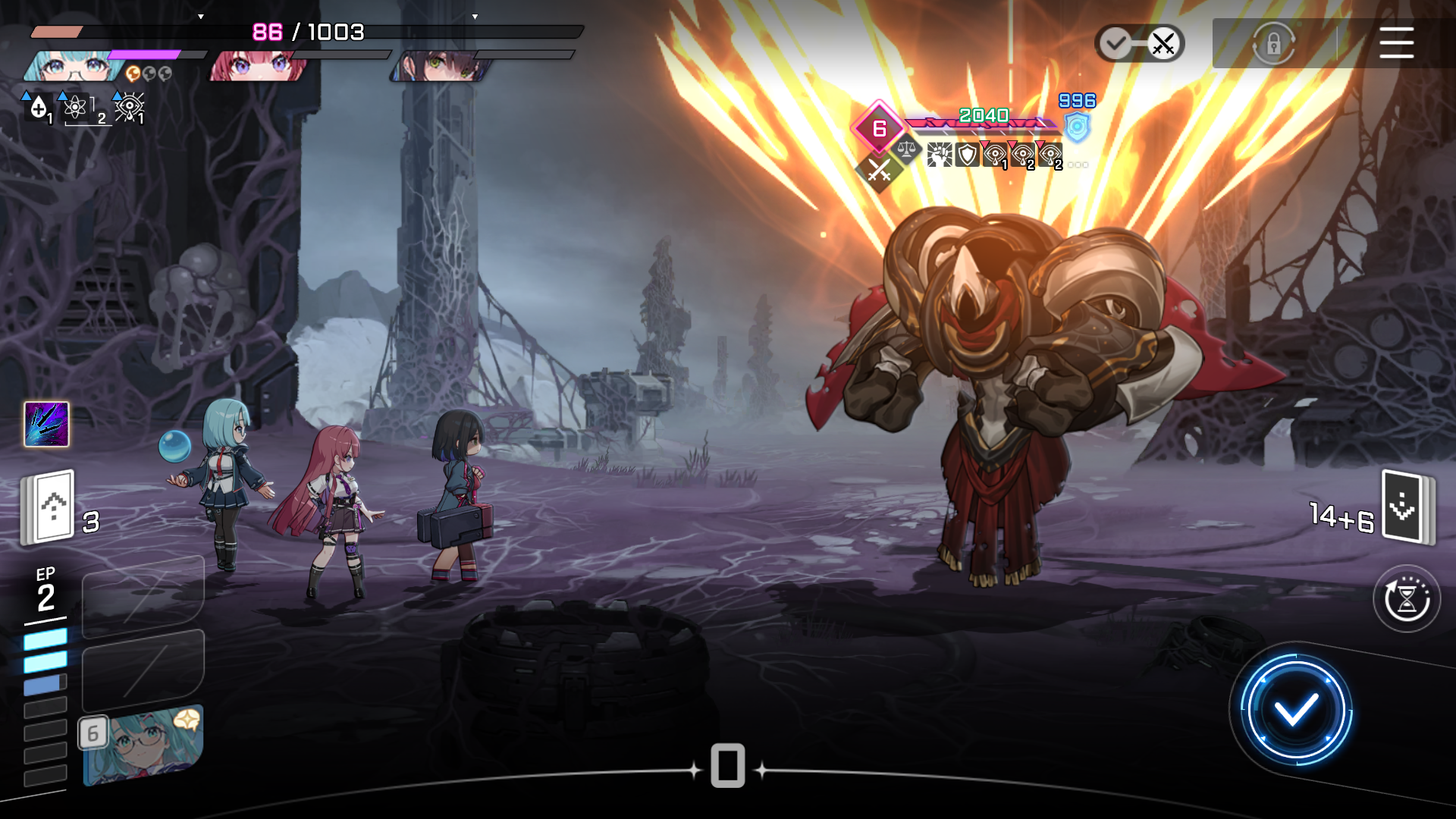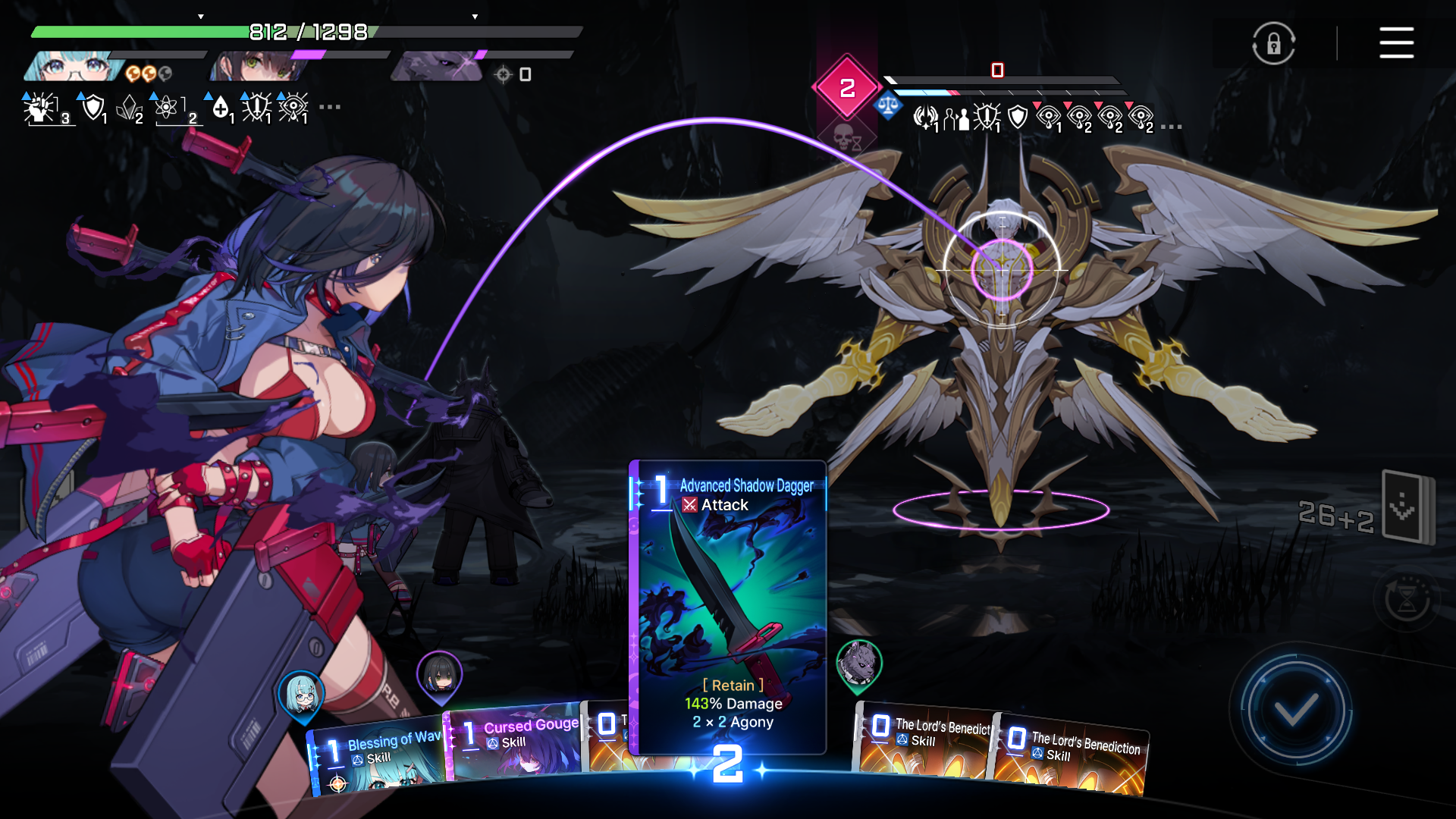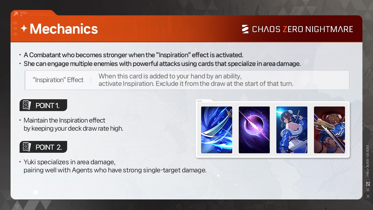 Заковырял первого босса за Юки на последней сложности - из неочевидного ключевой картой оказалась вот эта - она вешает weakness что значительно упрощает игру так как как босс так и большинство противников в целом обычно имеют одну сильную тычку и это делает этот дебафф суперэффективным и значительно упрощает отхил в целом Думаю остальное должно пройтись без проблем (если аккуратно)