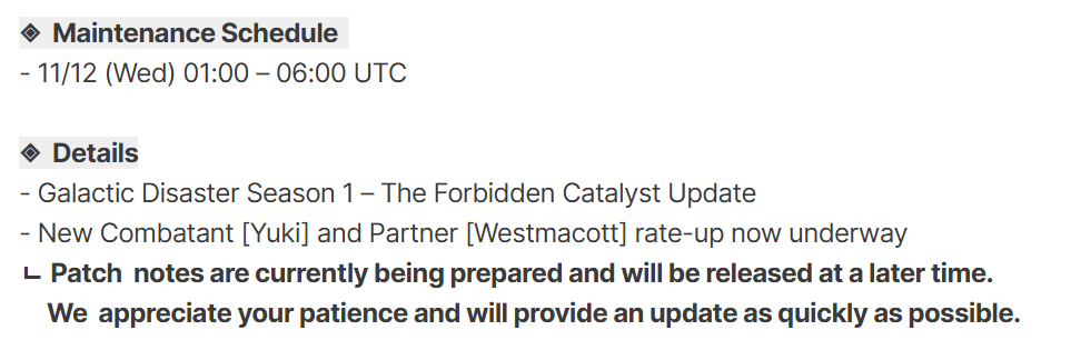 — Стоимость прокачки персонажей и партнёров в юнитах (кредиты) будет уменьшена на 80%. Все ранее потраченные юниты будут возвращены игрокам по почте. — Будет добавлен магазин Blackhorn Trade, где продаются материалы для прокачки. Валюта для него добывается в Хаосе. — В будущих обновлениях будет добавлена возможность временно повысить уровень персонажей, чтобы опробовать их в бою.