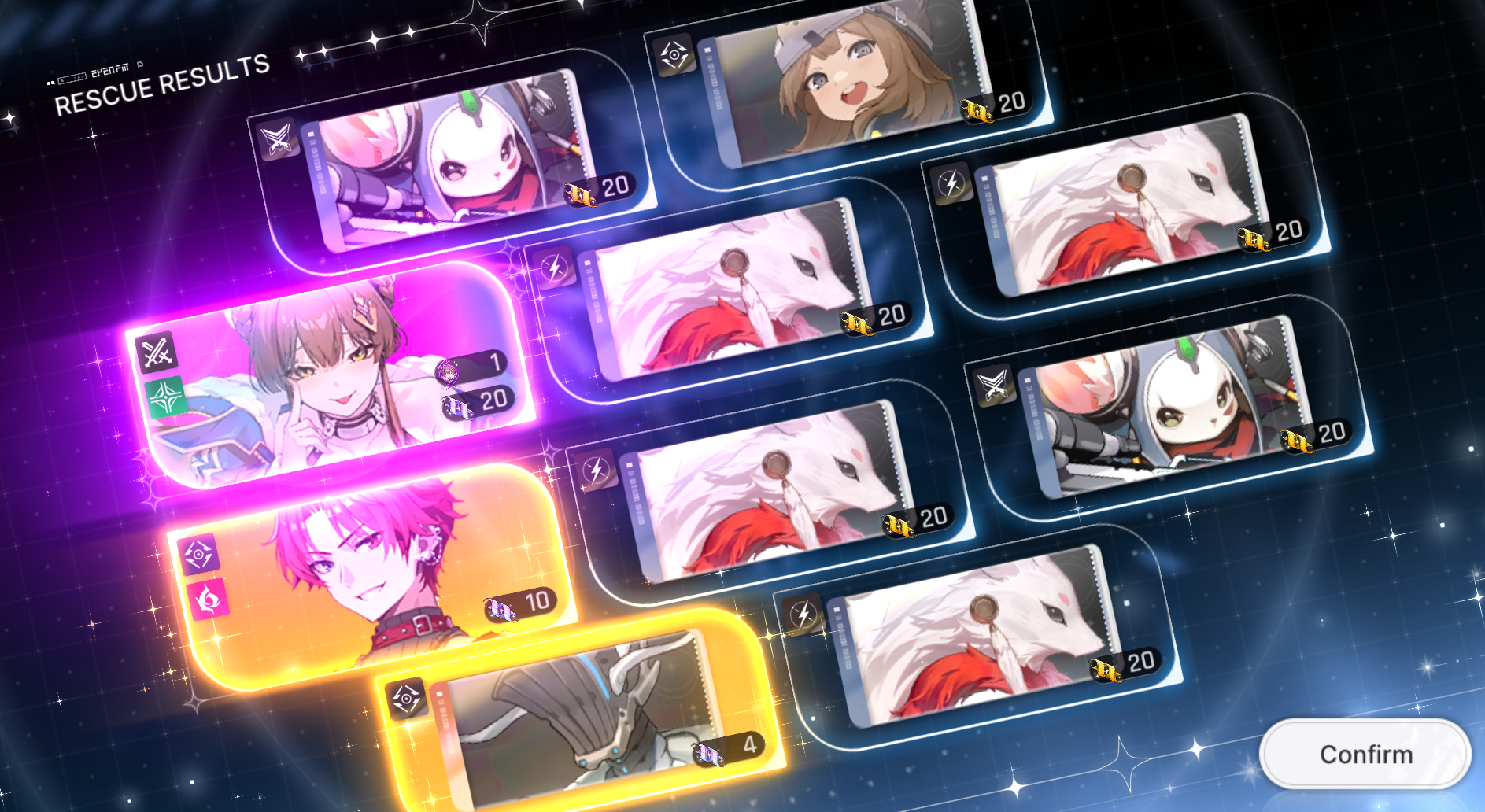 — В будущих обновлениях Пространственные туннели смогут появляться в Кодексе. Если вы получите Forbidden карту, то ваша Save Data будет помечена как сезонная. — В будущих обновлениях, если вы получите копию персонажа, чей уровень Эго уже максимальный, вы получите специальный ресурс. Их можно потратить для покупки Эго, Партнёров, Призмы для анимированных карт и другие вещи. Когда эта функция вступит в силу, все игроки получат этот ресурс по почте за все случаи, когда они получали персонажа с макс. Эго.