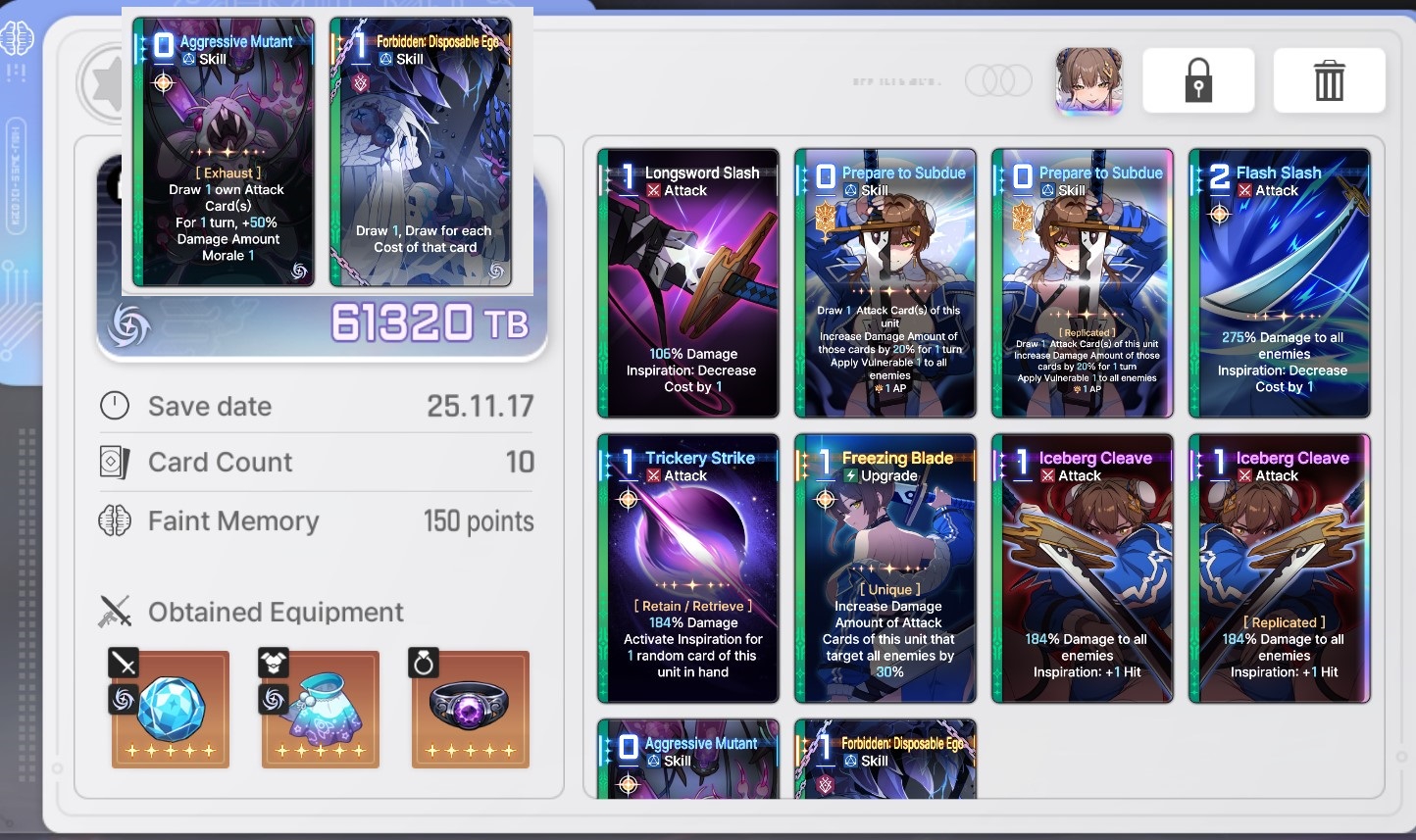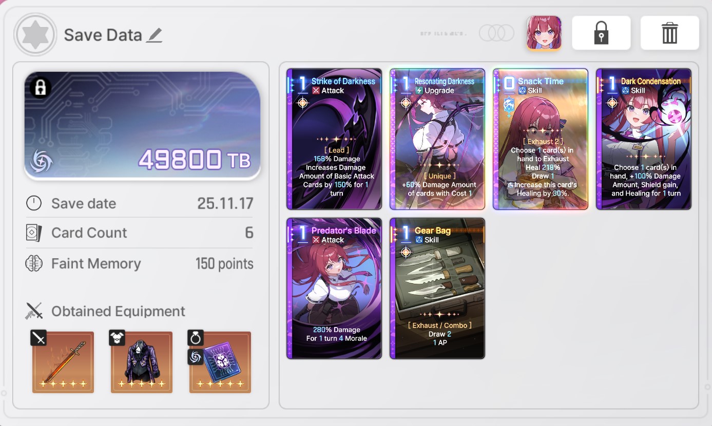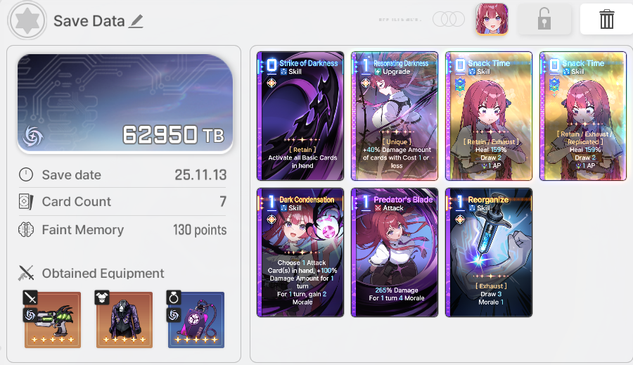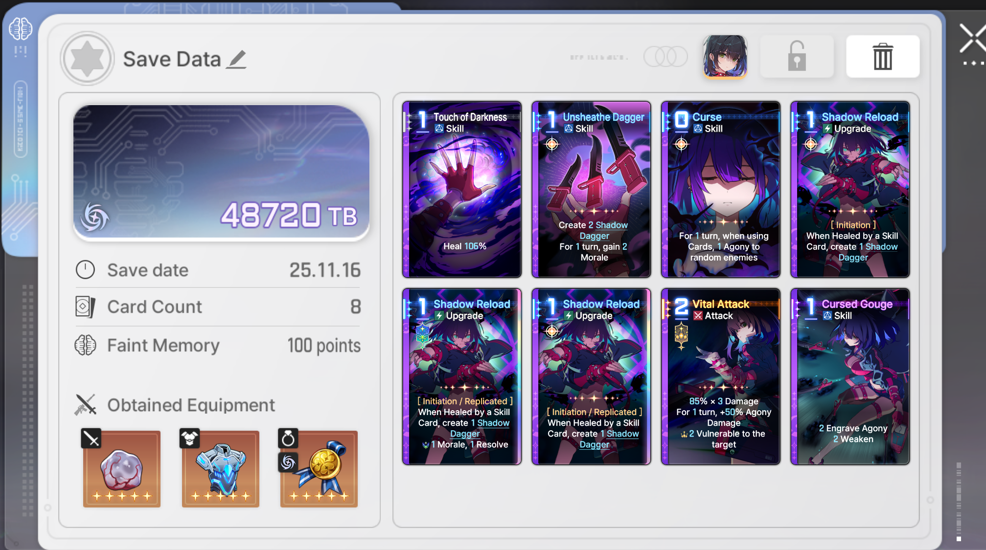 Как тут сейв дата работает? Удалял 1 хил и базовый пук, сделав дабл тактикал анализа. По итогу все удалённые карты на места, а дубля нету. Но у других чаров вроде всё нормально, без хуйни.