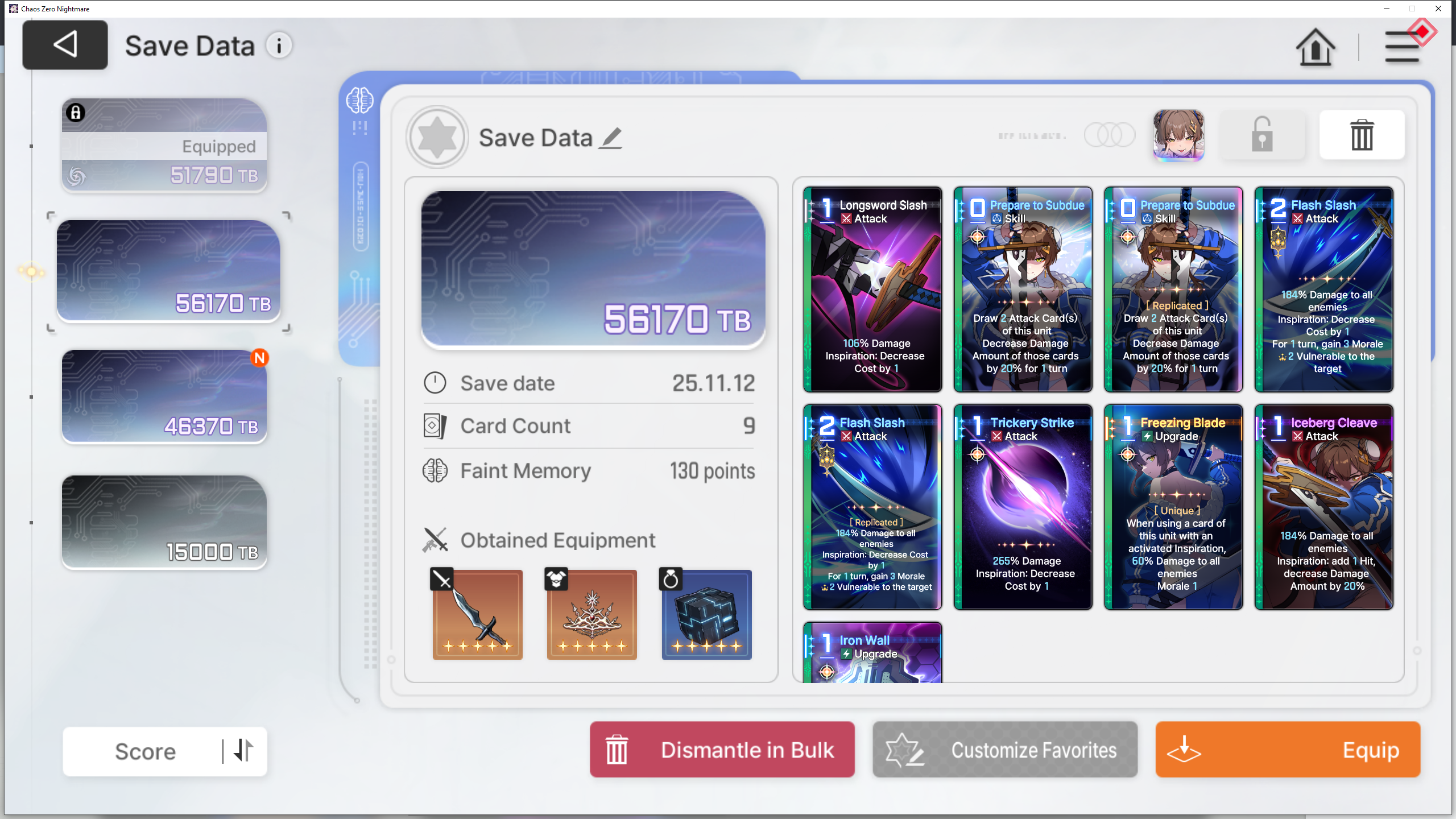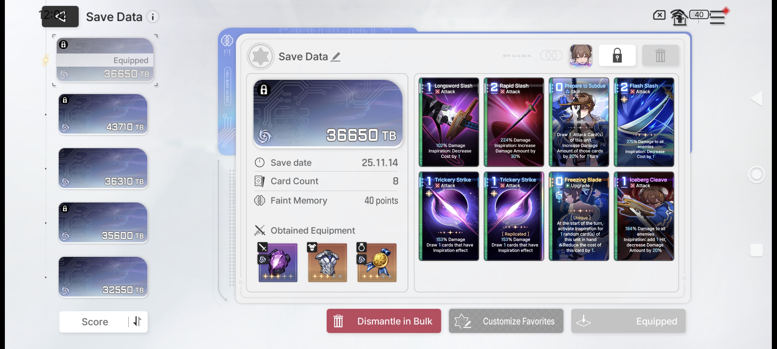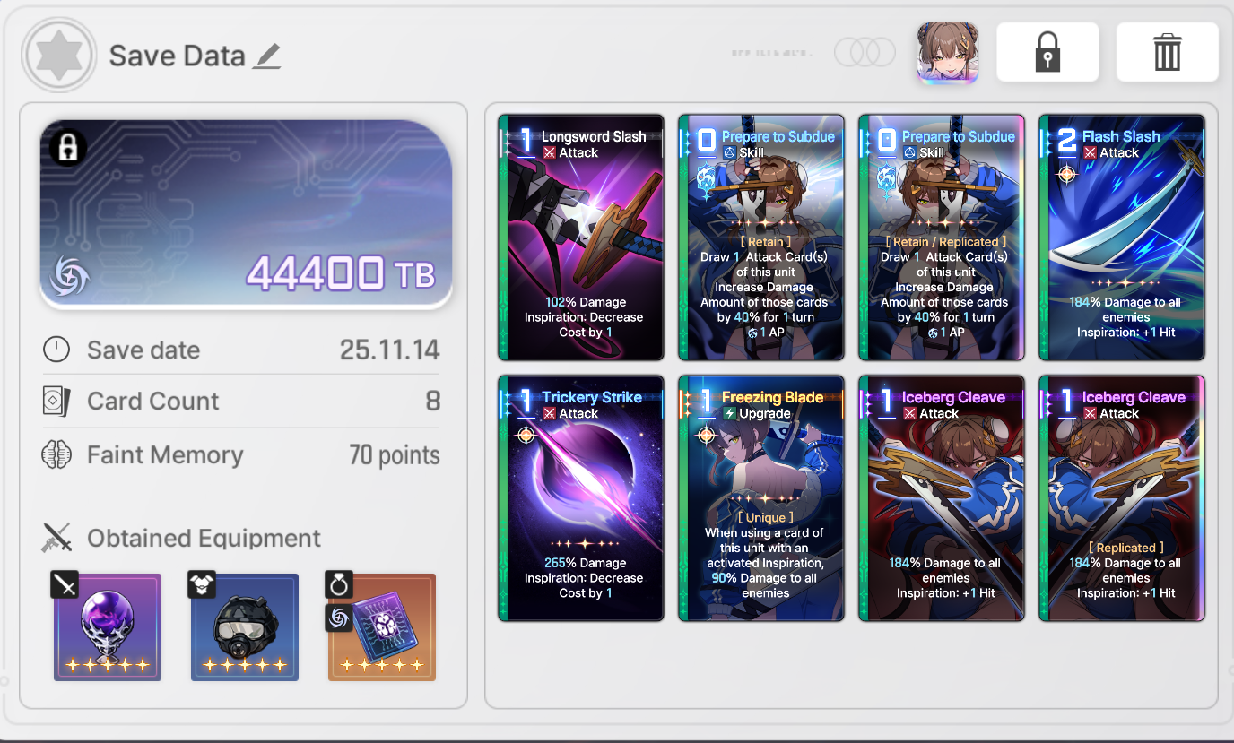 Как тут сейв дата работает? Удалял 1 хил и базовый пук, сделав дабл тактикал анализа. По итогу все удалённые карты на места, а дубля нету. Но у других чаров вроде всё нормально, без хуйни.