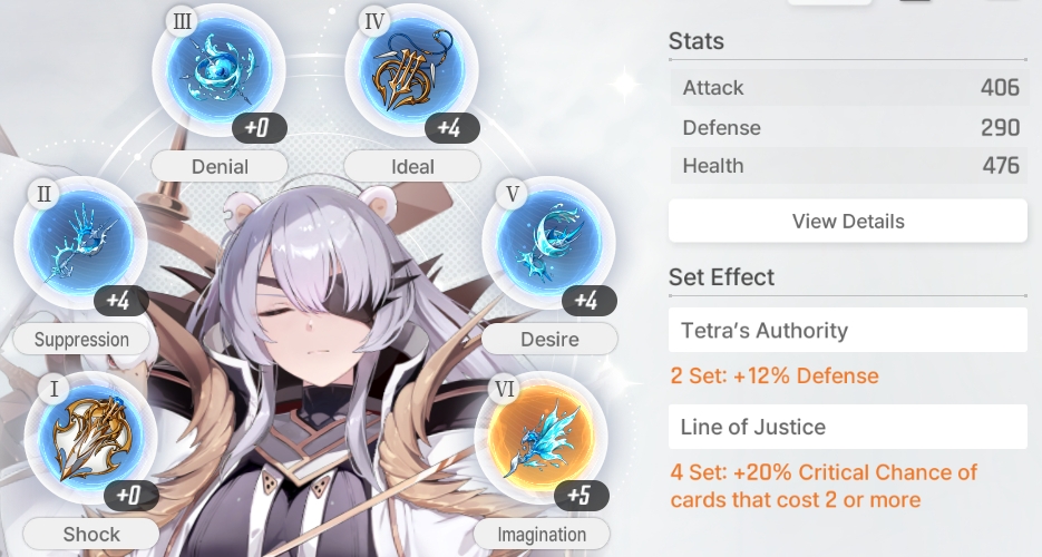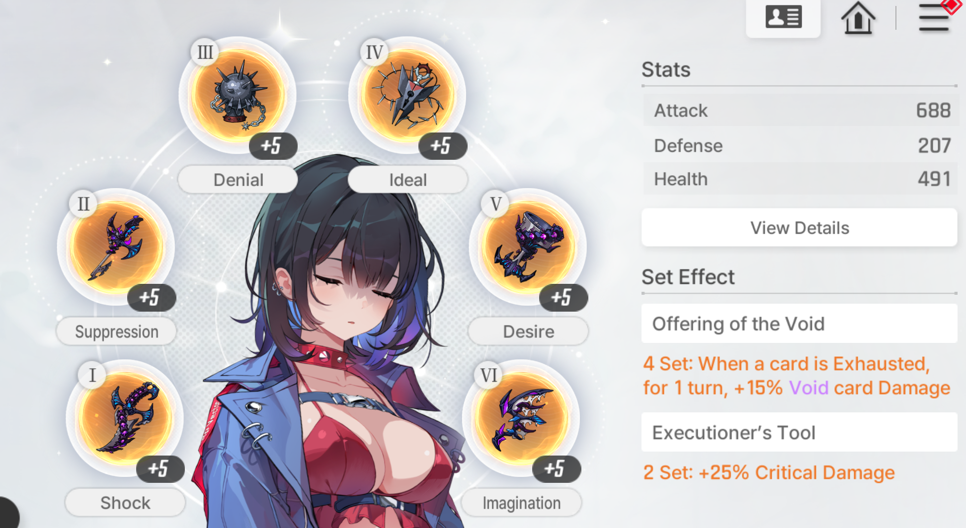система фрагментов все же здесь самая уебищная среди всех гач - ладно еще то что нормальные сабстаты никогда не заролишь - так еще и сеты 4х закокблоченное говно - напривер войд сет непросто закокблочен под стихию, а нужно еще и каждый раунд применять карту с эффектом exhaust - а такое не каждый раунд удается и не всем персонажам - у Рин вообще нет карт с exhaust. сеты закокблоченные на кост абилки (например) и вовсе полное дерьмо - во время реального прохождения хаоса многие карты получают хорошие апгрейды снижающие кост и это ломает нахуй эффект сета делая его бесполезным.