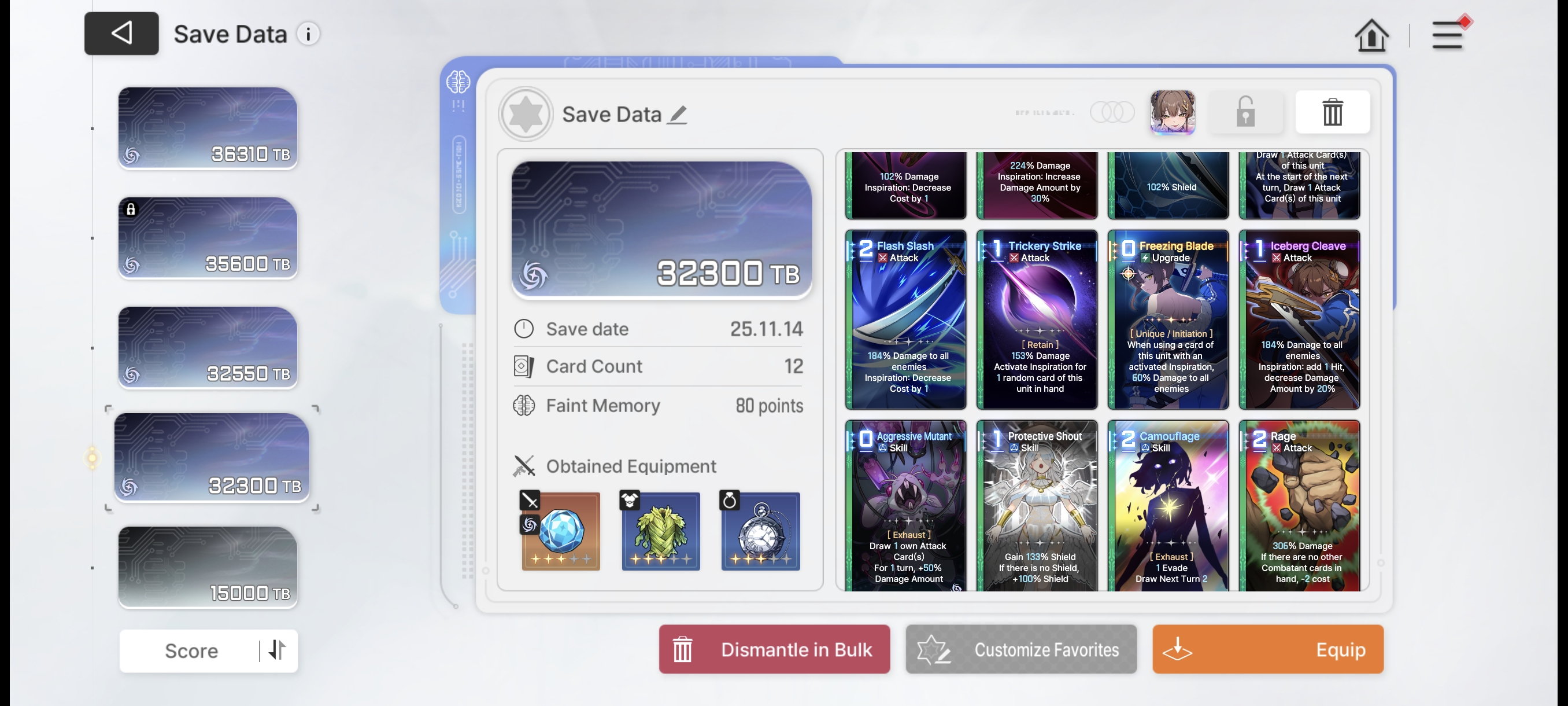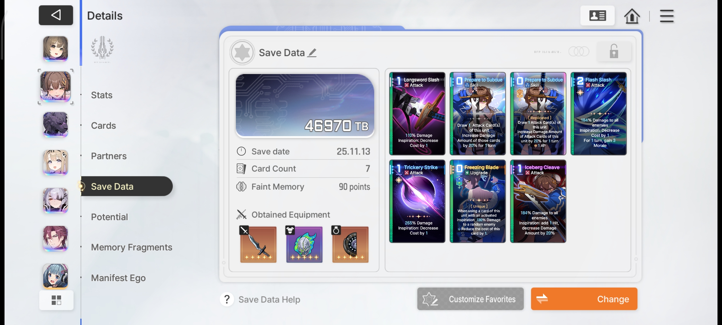 Так понимаю теперь прикинуть нормально можно будет, что сохранится Save Data Information Improvements - An in-game help section explaining the Save Data storage rules has been added. - A guide on Save Data value has been added to the Chaos Infiltration team formation UI. - The details of obtained Save Data now display the value of Faded Memories as points. - This follows the notation of the Save Rules introduced in the help section, and allows you to check the total value of Faded Memories stored within the Save Data.