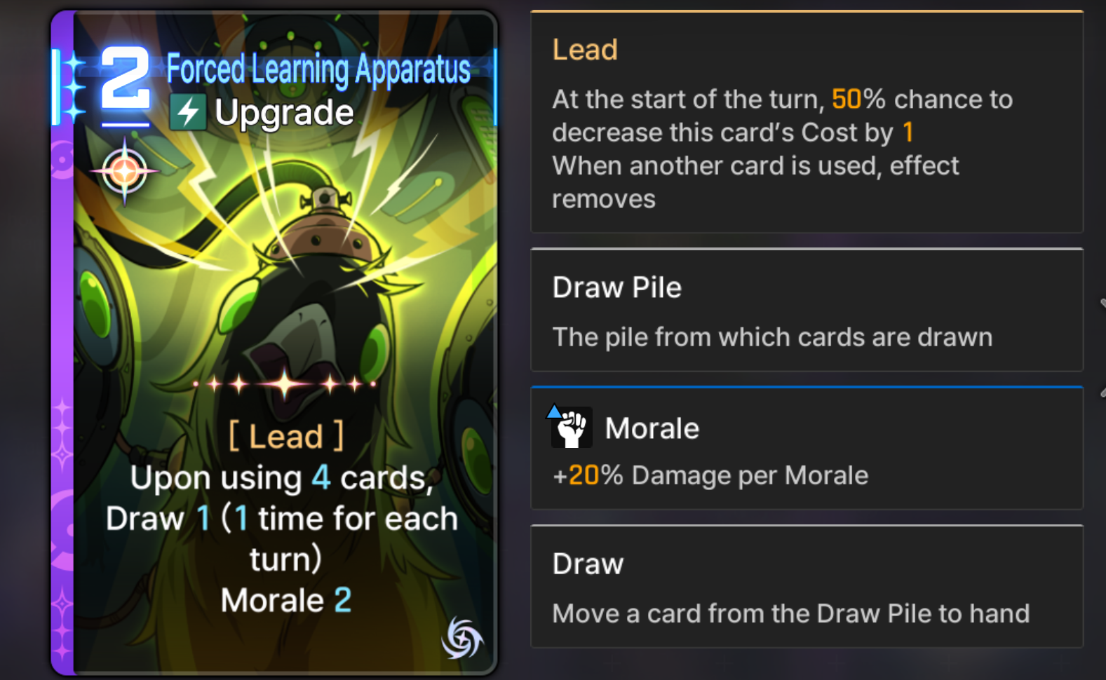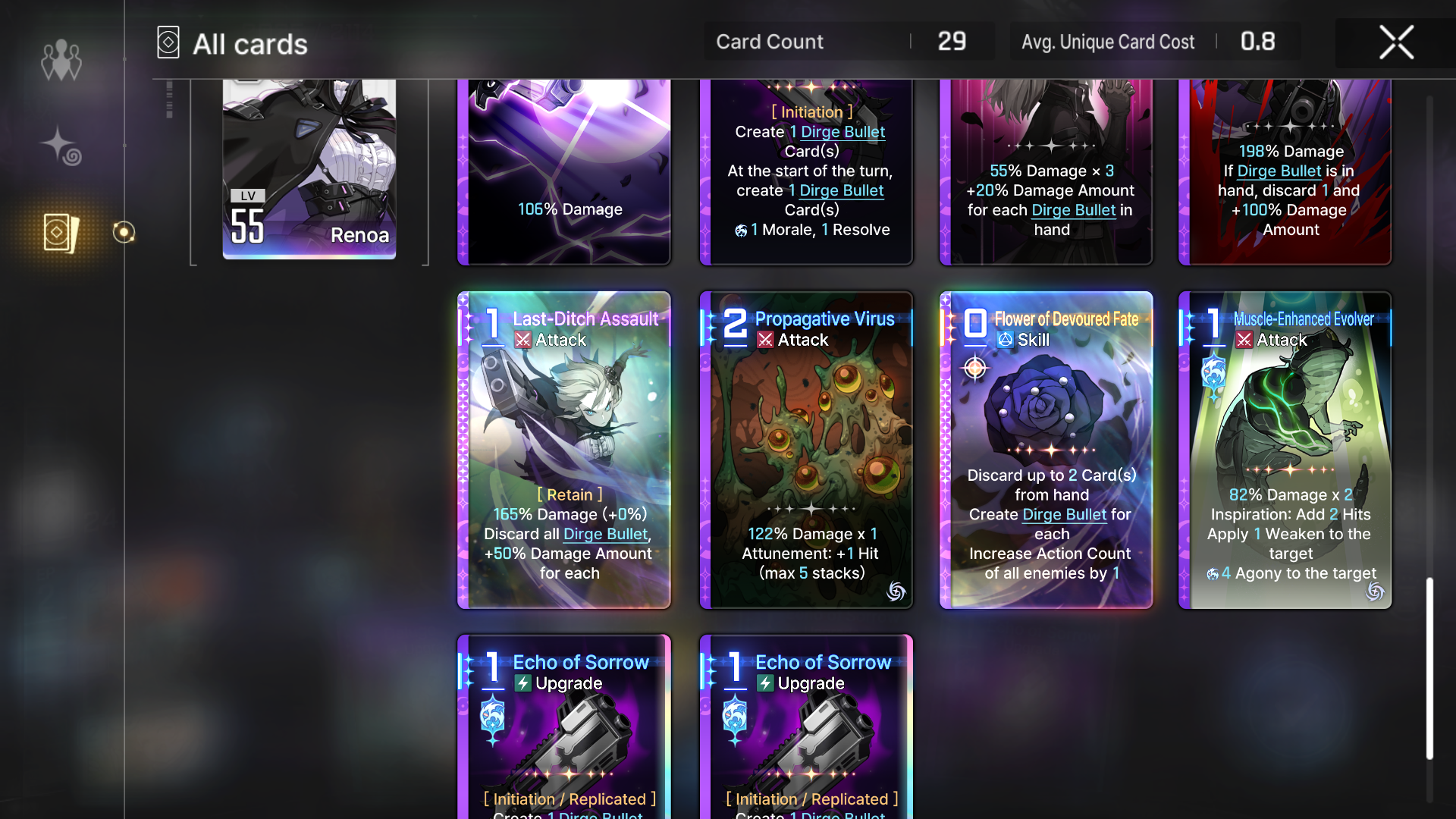 Я вот не понимаю нахуя в игре сделали бесконечное число дебафов, бесконечный стак морали. Из-за этого последующие боссы будут слишком легкие, хорошо что додумались что в ивенте нужно хотя бы колоду собрать заново.