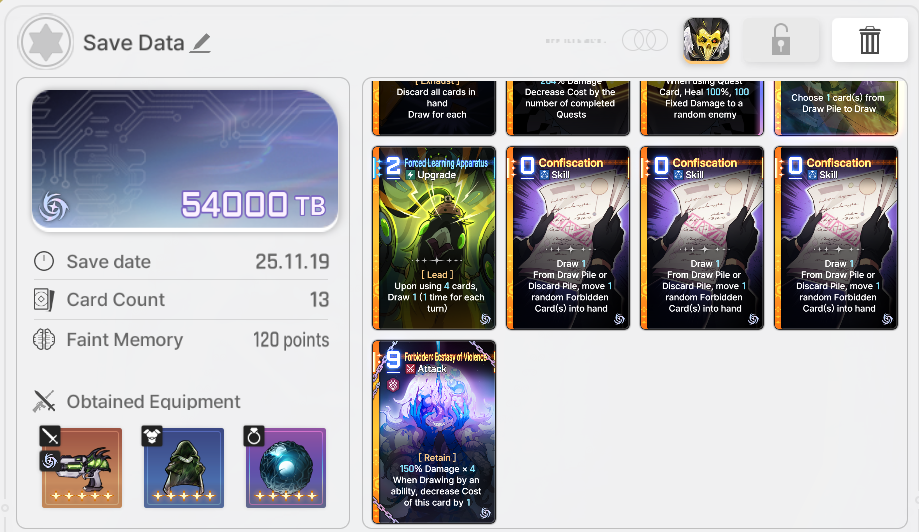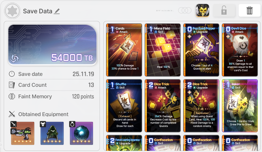 блядь, ну почему карты монстров не сейвятся? билды с ними такие прикольные же. самое главное что когда стараешься делать раны для сейв даты лучше намерено их обходить и это скорее руинит фан надеюсь они реально сделают систему где ты сам выбираешь сейв дату в итоге