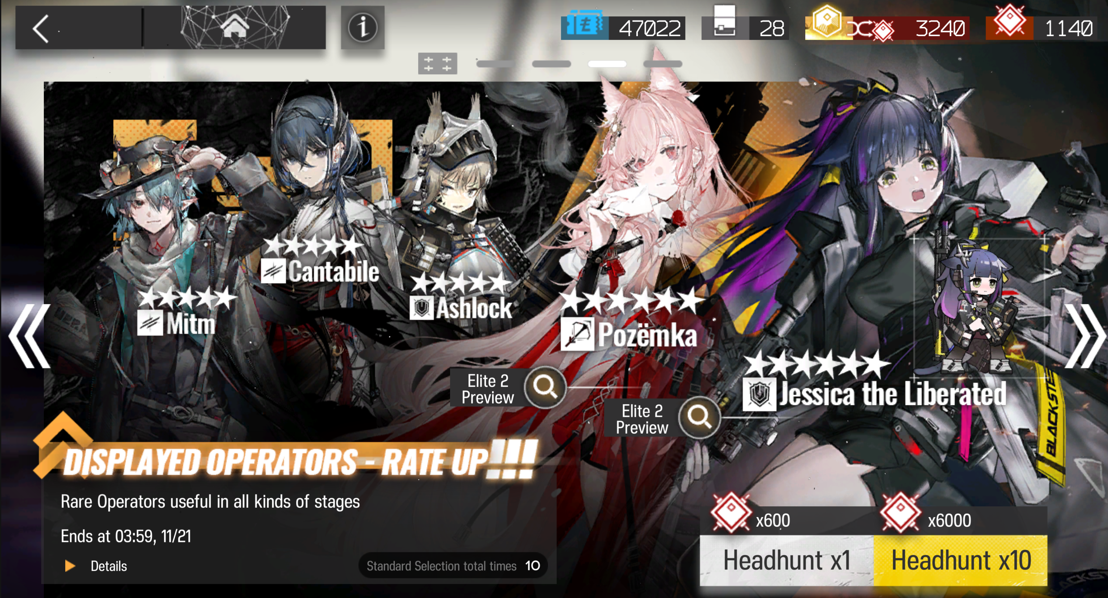 Standard Pool №153 (с 07.11.2025 до 21.11.2025): 6★: Pozëmka / Jessica the Liberated 5★: Cantabile / Mitm / Ashlock В магазине Pozëmka (6★) и Cantabile (5★)