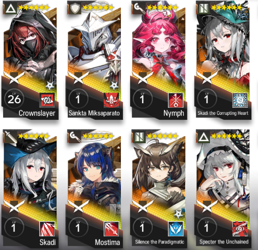 >кто здесь в первых рядах на промоушен Лемуен против боссов, Эксия повесит метку для неё как раз. Гладия, если собираешься Ульпиануса крутить реран после этого ивента. АльтСкади и Монтянка для баффов и тру дамага. Остальные уже по желанию, возможно нинужны вовсе.