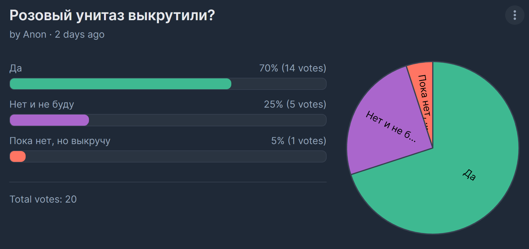 >>5922915 В прошлом тоже с нулевой было 5+ голосов, только голосовалка странная была, где нужно не выбирать а перемещать, ну и вариант калфореус наверху, нехер мухлевать