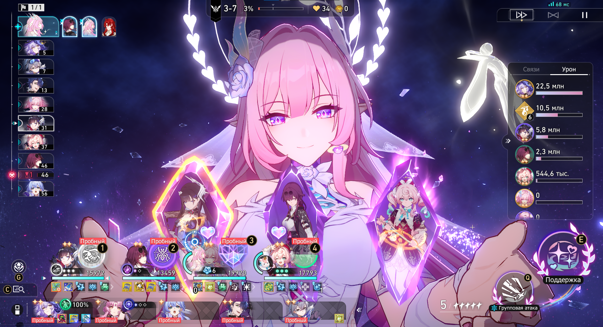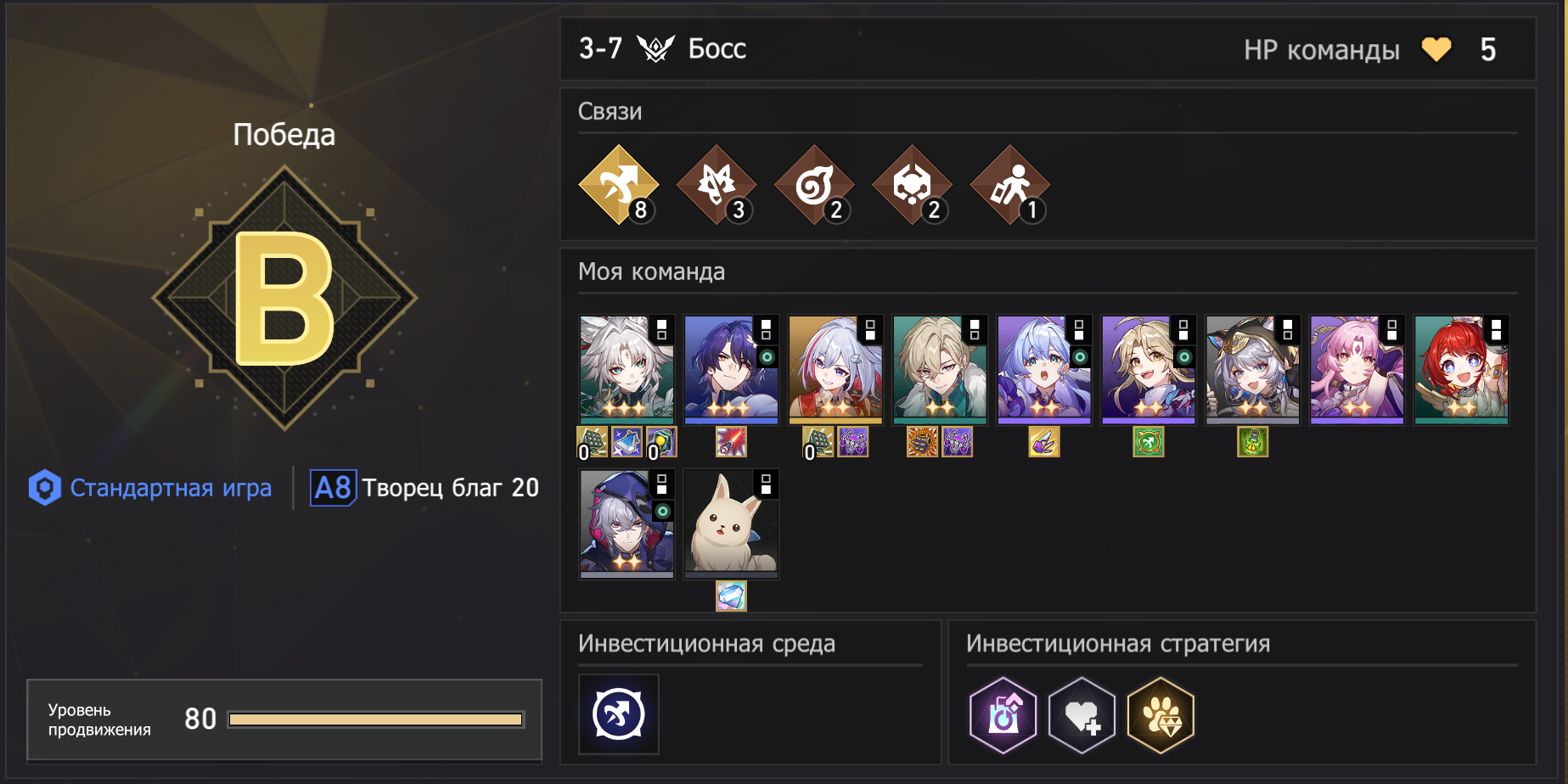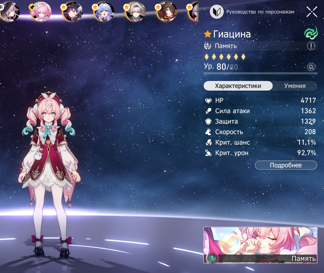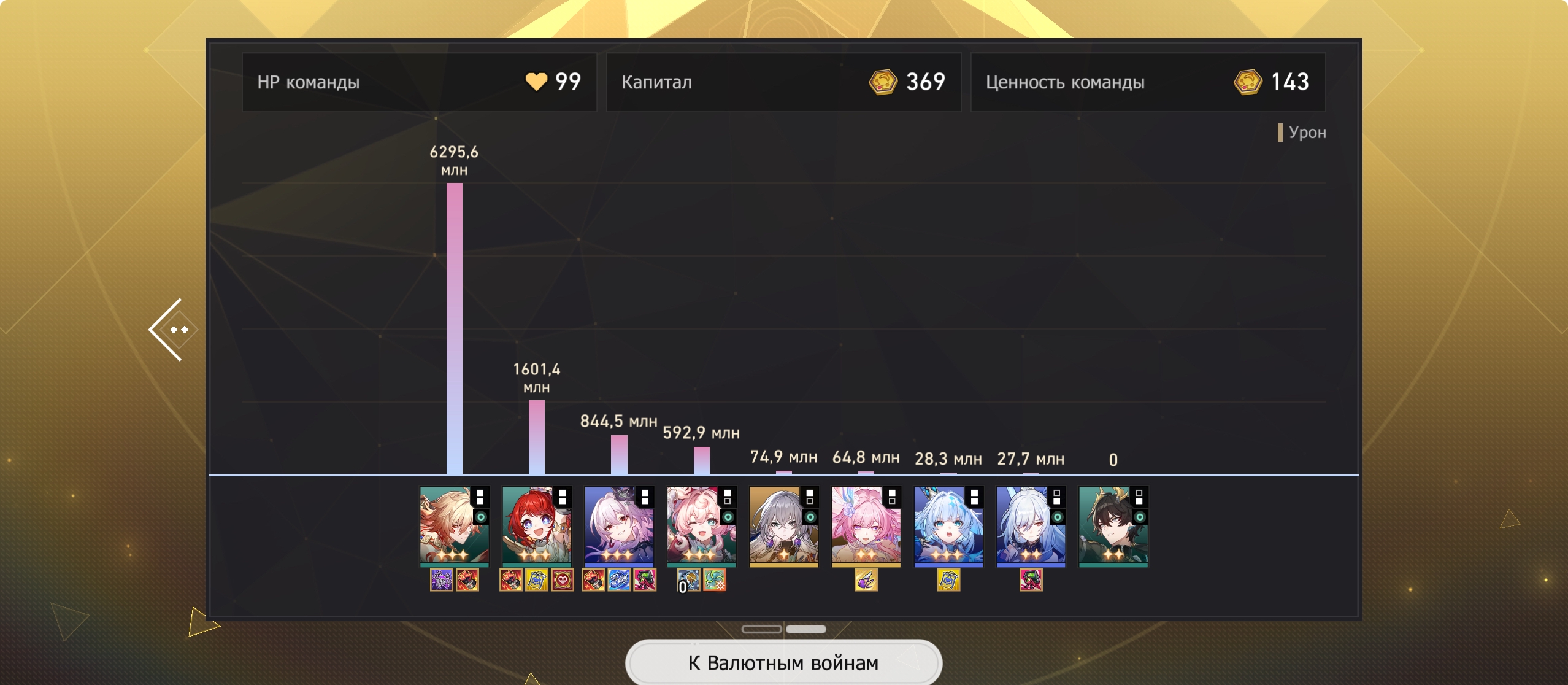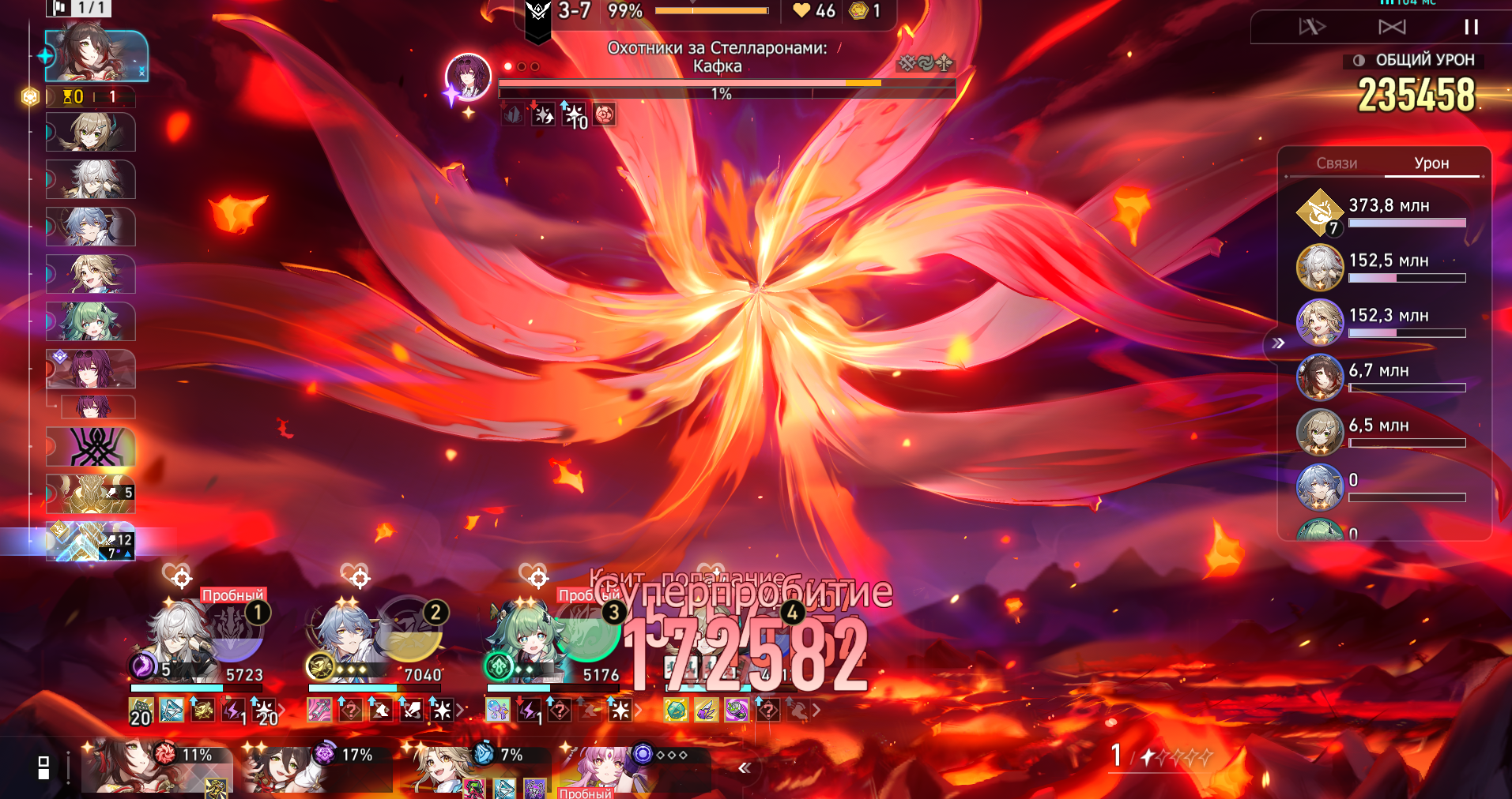 Все остальные персы там ситуативны, Кафку можно вообще выкинуть когда собрал кор, Жуань не нужна, Гиацина тоже, но взять пришлось потому что афикс выпал ебанутый на рефлект, а она очень хорошо хилит. В идеале вместо Гиацины взять Наташу с Гепардом, тогда робот будет больно стукать, но они должны быть одеты, иначе пачка упадёт.