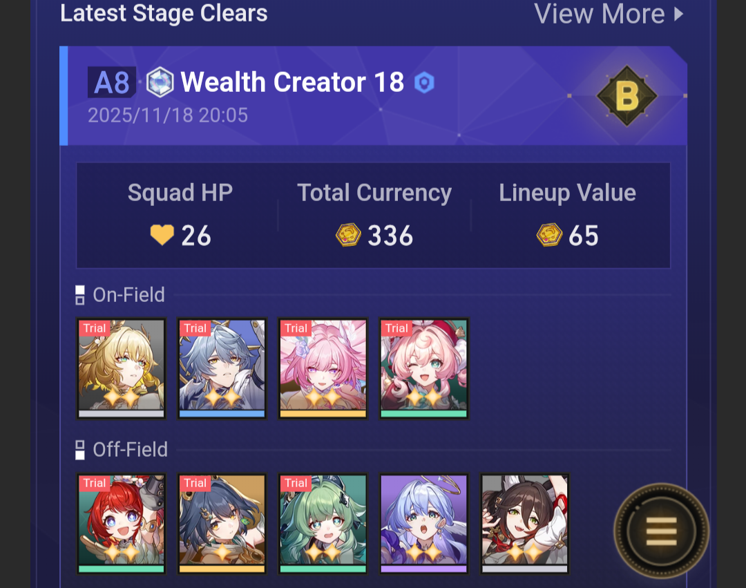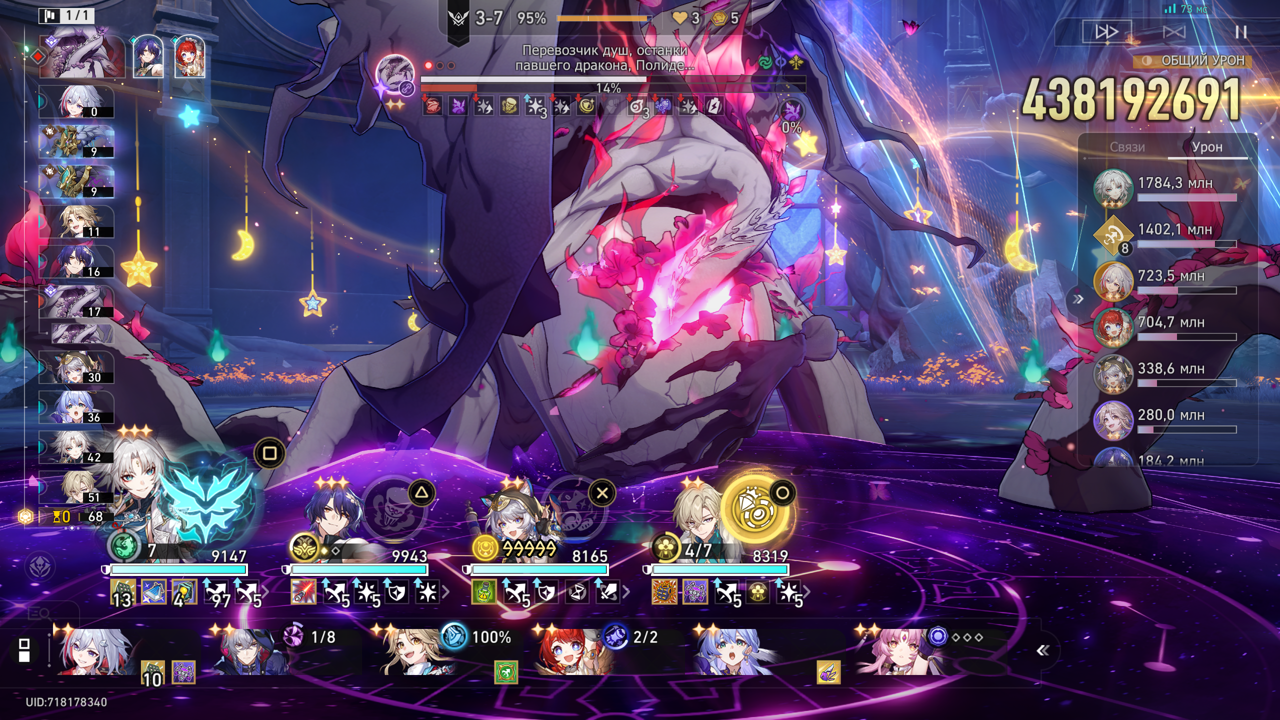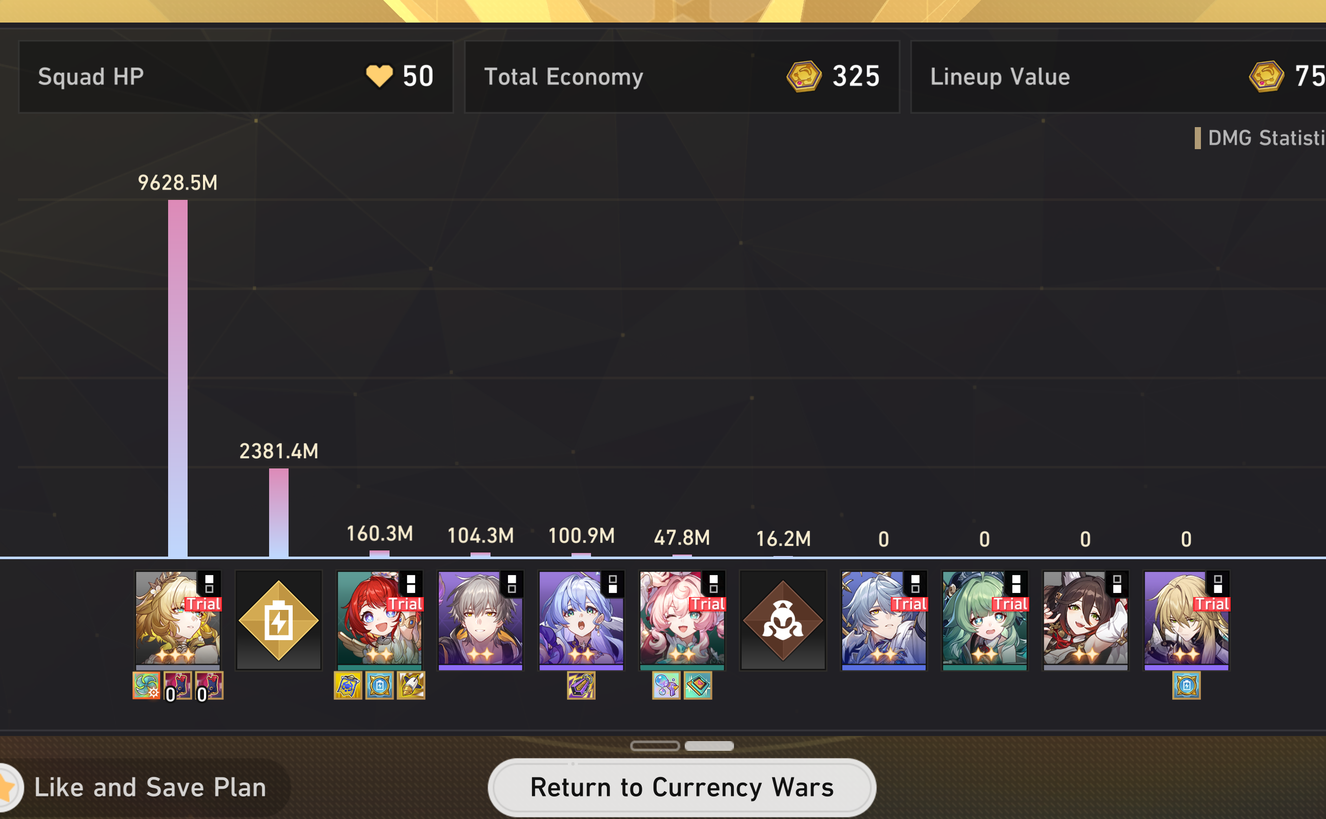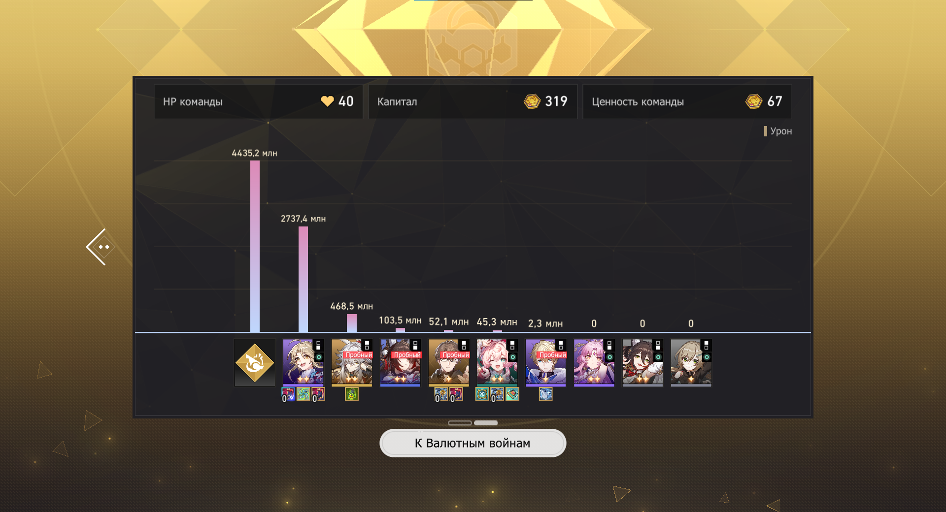 Все остальные персы там ситуативны, Кафку можно вообще выкинуть когда собрал кор, Жуань не нужна, Гиацина тоже, но взять пришлось потому что афикс выпал ебанутый на рефлект, а она очень хорошо хилит. В идеале вместо Гиацины взять Наташу с Гепардом, тогда робот будет больно стукать, но они должны быть одеты, иначе пачка упадёт.