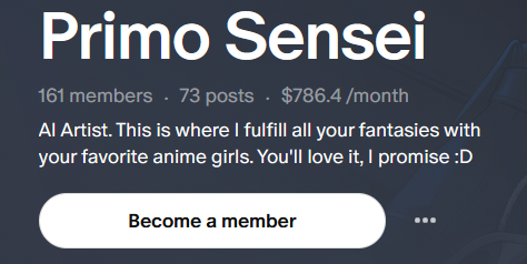 >>5913810 На кемоно есть мнного, только самых последних артов может не быть. patreon 132551626 patreon 23415945 Стиль конечно такое. Выглядит как дефолтная нейронка.