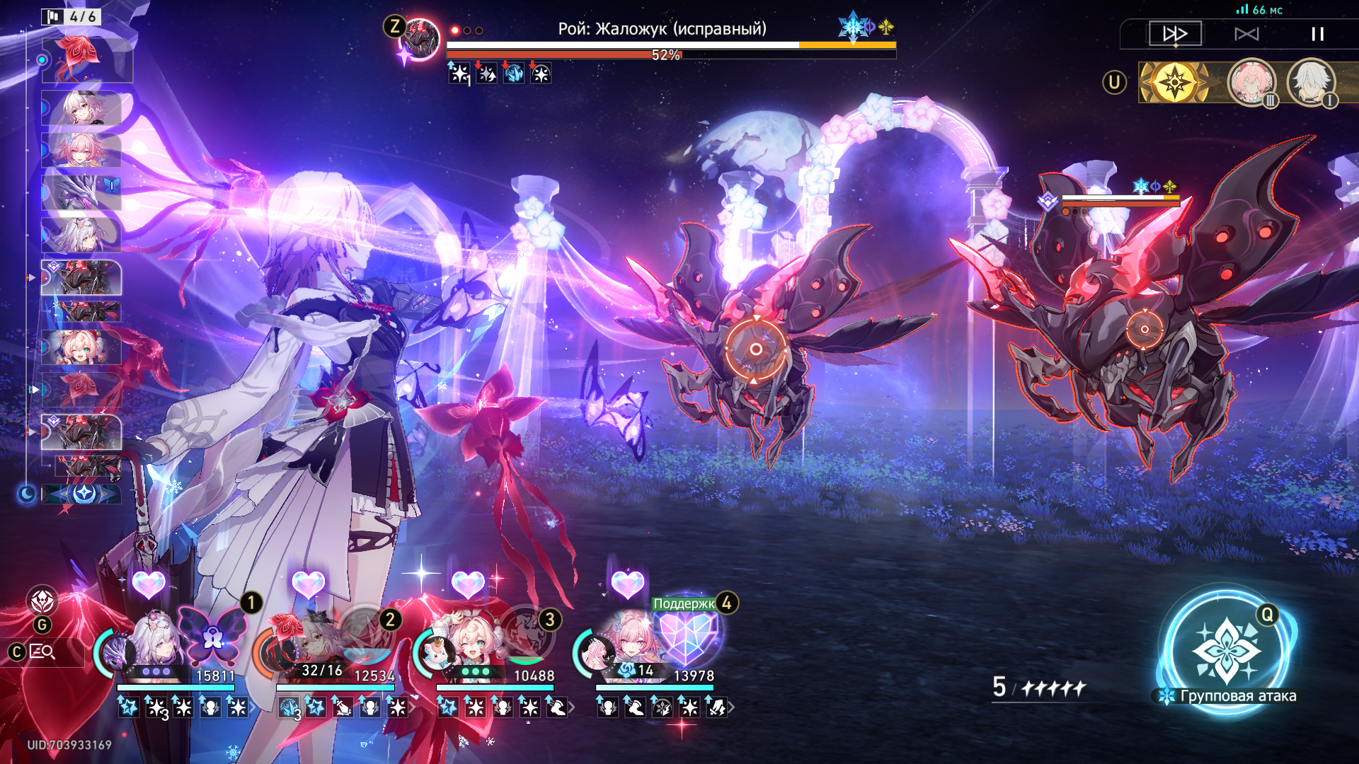 Советую выкинуть Керидру и поставить Фушку, со связкой Гиацина+Фушка пачка практически никогда не может умереть. Из сапортов Кирена > Волк > Трибби/Зарянка