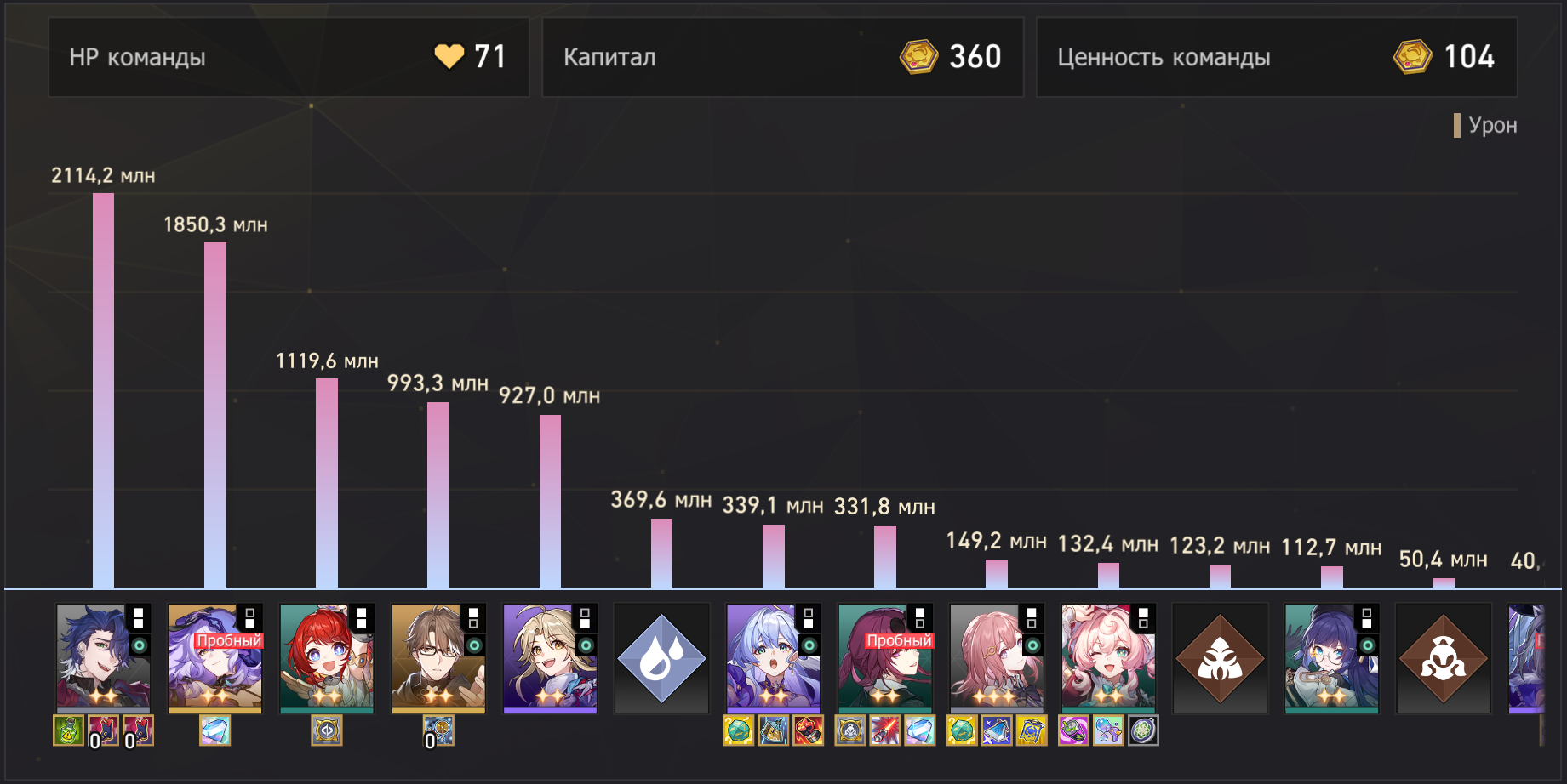>>5917920 Когда вы же читать научитесь. Там же написано, что эти подсчёта не для сравнения урона между персонажами или разными командами, а для сравнения набора реликов.