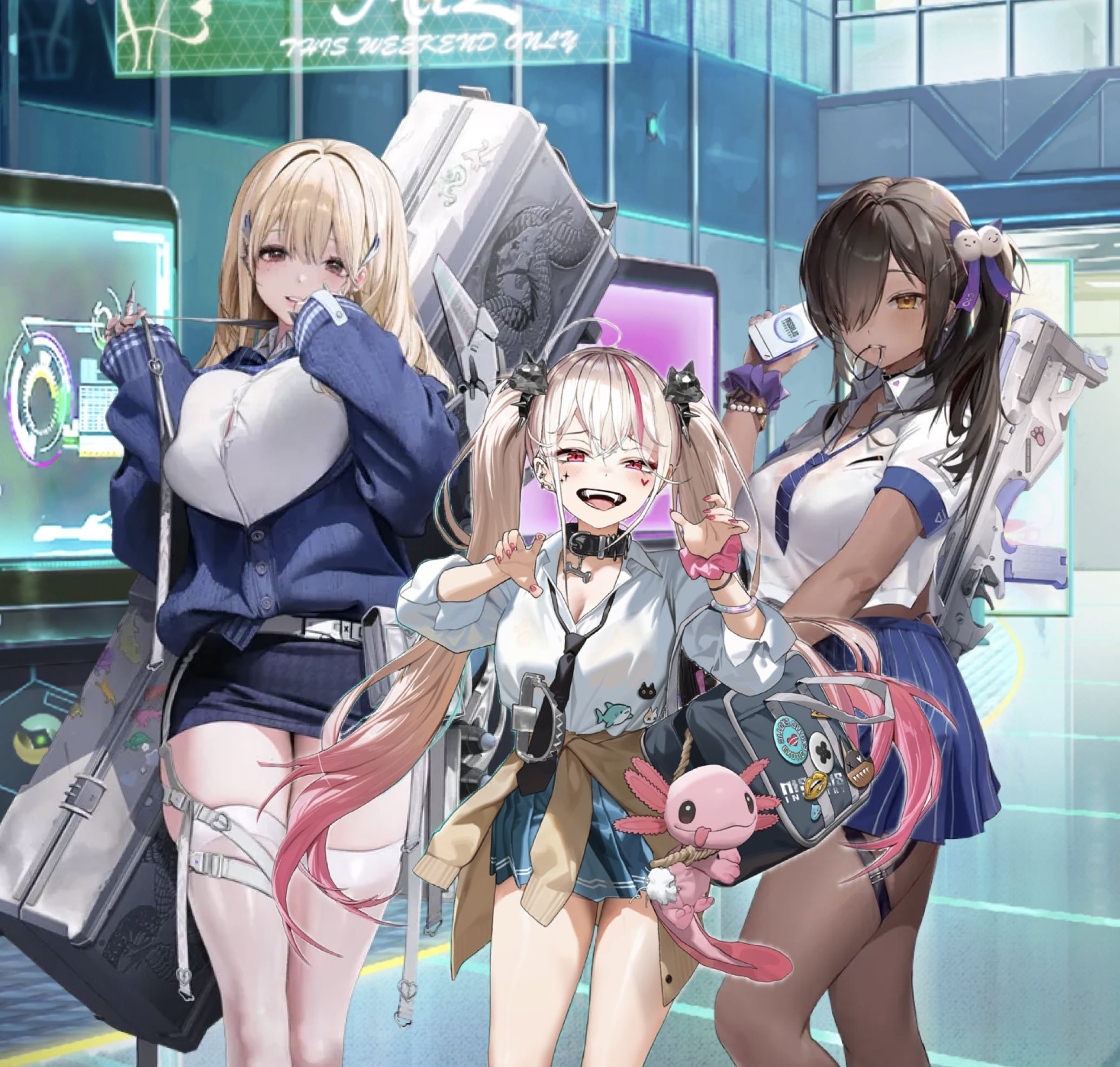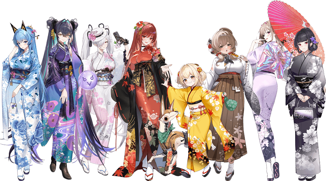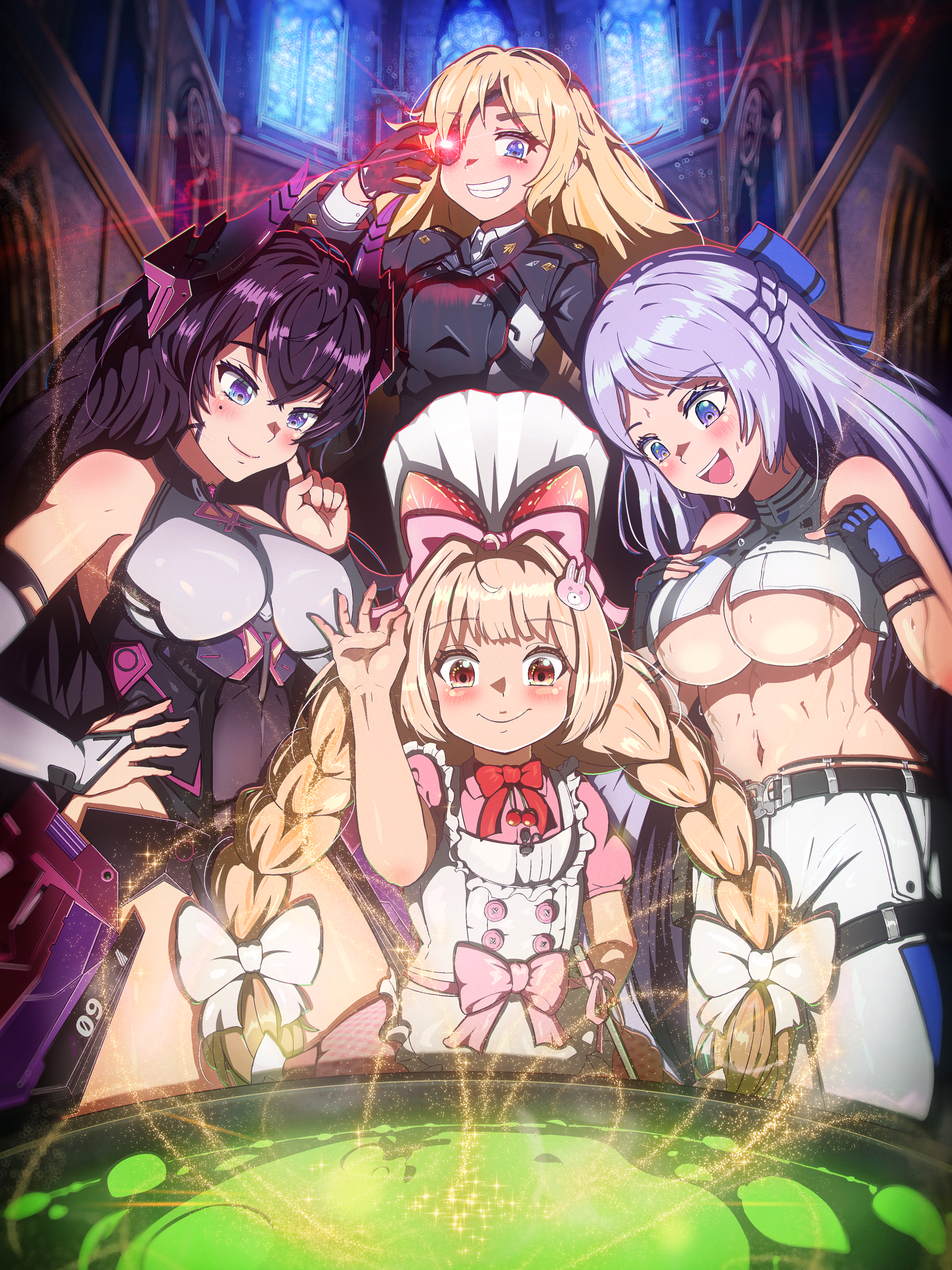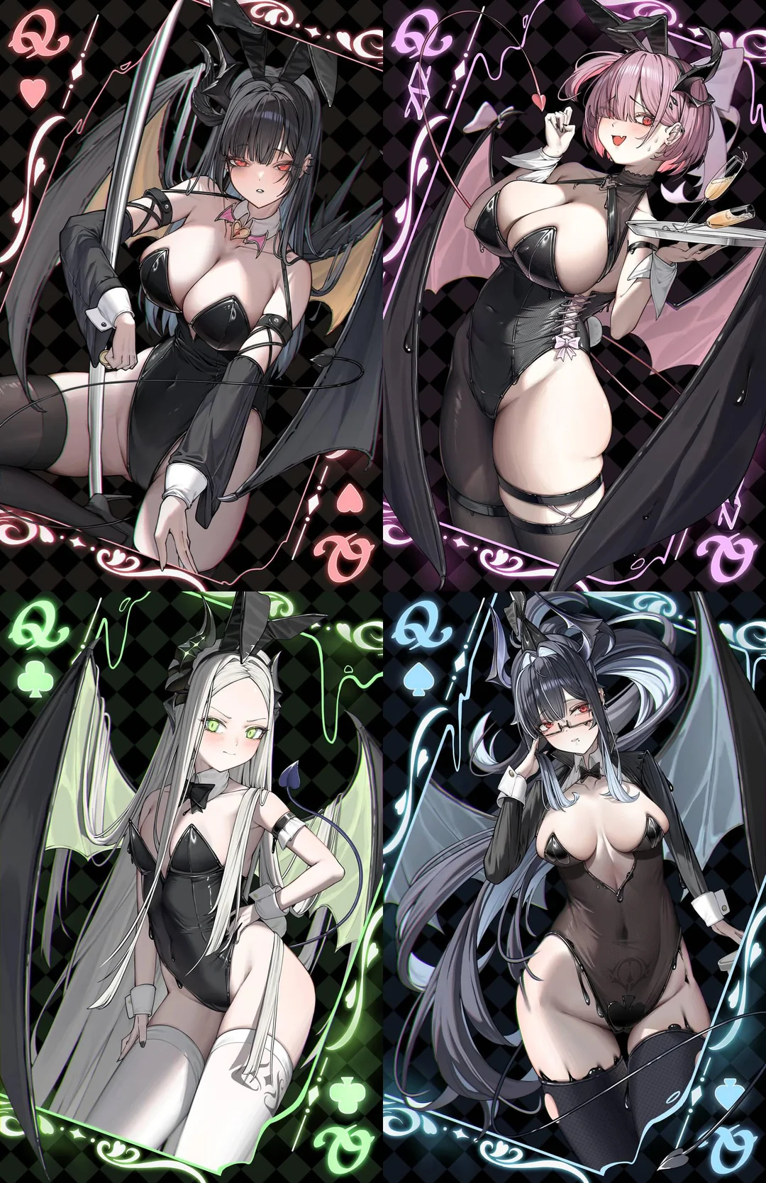 Школьницы Тиа-Нага. Мейды альты Матст и Анкор. И все штатные зайцы из Коин Раша: Бланк + Нуар и потом ещё и Руж добавили.