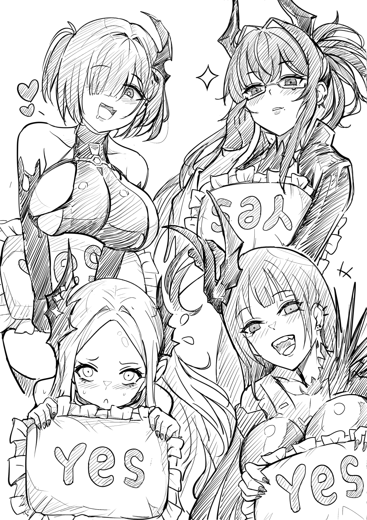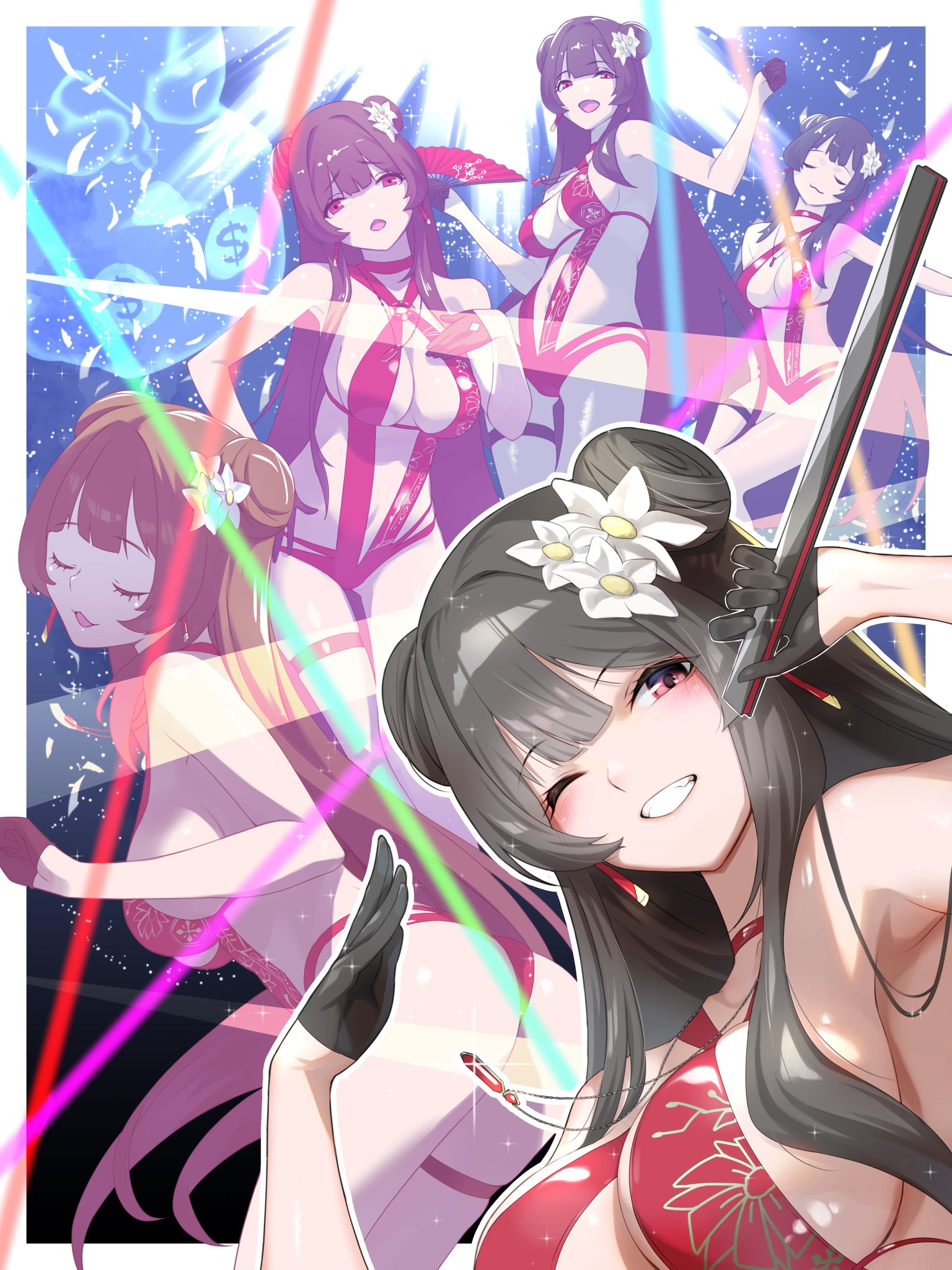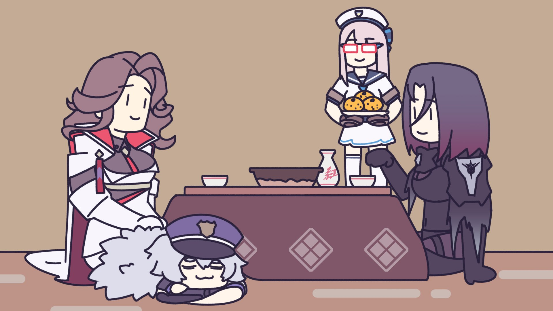 Школьницы Тиа-Нага. Мейды альты Матст и Анкор. И все штатные зайцы из Коин Раша: Бланк + Нуар и потом ещё и Руж добавили.