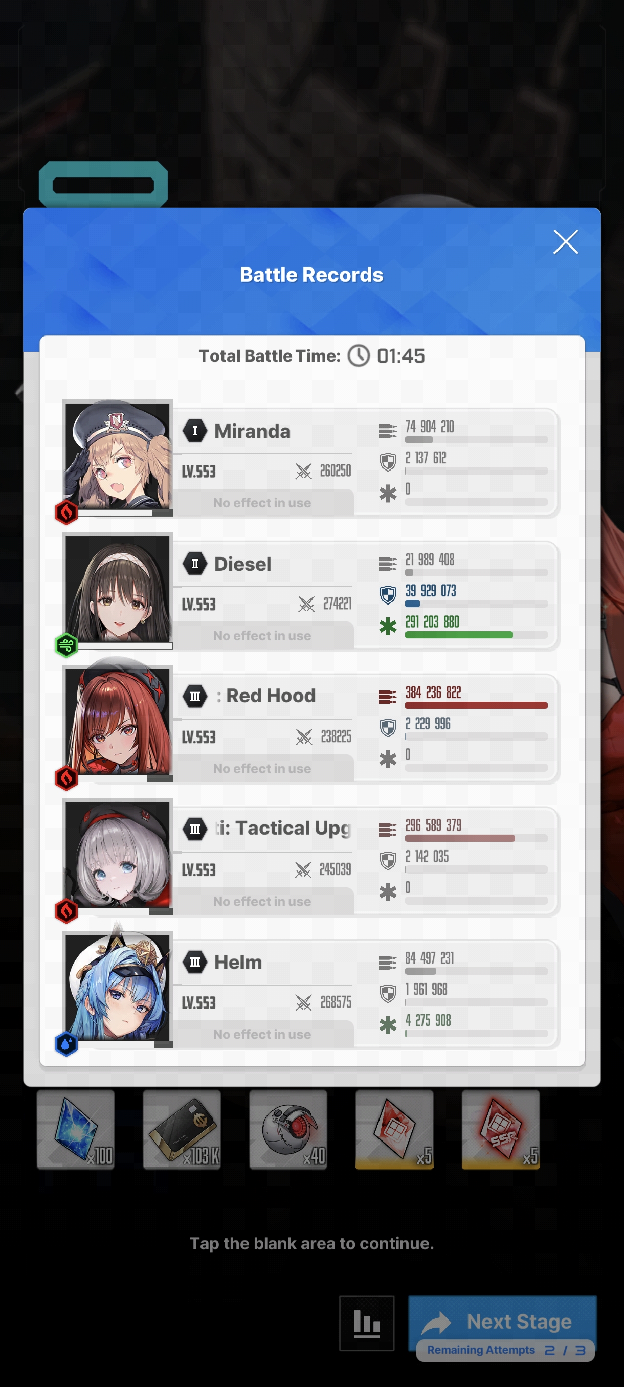 Приятный босс. Немного заморочился, потасовал туда-сюда тимы, подкачал, где нужно, и удалось улучшить результат до удовлетворительного. Из 0.5% выкинуть до конца дня не должны. Забавно, что в ветро-рейде не нашлось места летним Сакуре и Розанне. Разве что опция для гусиков, скипнувших Ева-коллаб.