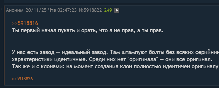 >>5918725 Ты рассуждаешь в Земных (наших, господи прости) понятиях первичности сознания через сиюминутные физически существующие нейронные связи в голове. В ушках же навалено лора про первичность души=информации (которая существует по своим законам) и манифестации сего в физический мир через спидокамни и прочие приблуды. Тебе это пытаются донести уже давно.