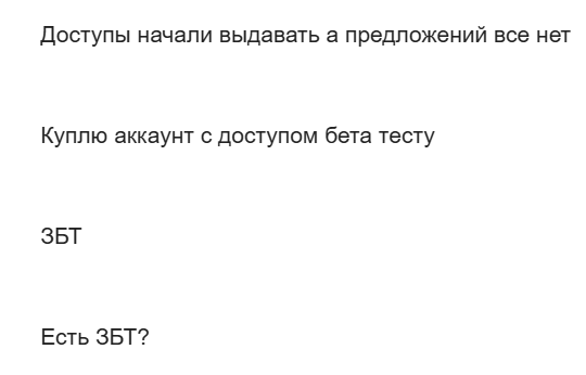 >>5944589 Потом у азиатов скупят по $3, будут перепродавать по $10. Сейчас просто никому дела до этого нет, так как пока инвайты ещё продолжают раздаваться. Стандартная ситуация для второй ограниченной беты в любой игры. На первую регают по 1к ботов с ботовода, на вторую по 10к. Спрос чисто с ботов растёт. Но если у Yostar хватило ума делать волны инвайтов до самого релиза, то ботоводы свои аккаунты смогут разве что себе в жопу засунуть, все тысячи. Так как здравомыслящий человек не будет покупать то, что завтра ему может бесплатно перепасть.