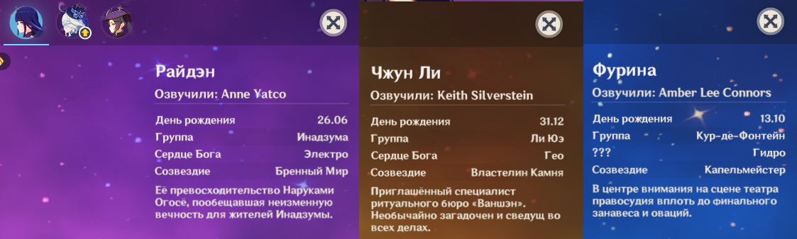 Забавное наблюдение сейчас заметил. Там, где у всех персонажей графа "Глаз бога", у архонтов написано "Сердце бога", но только у Фурины в этой графе знаки вопроса. Приятная мелкая деталь.