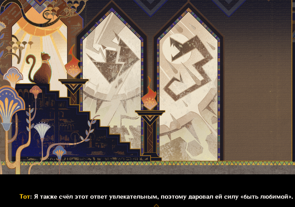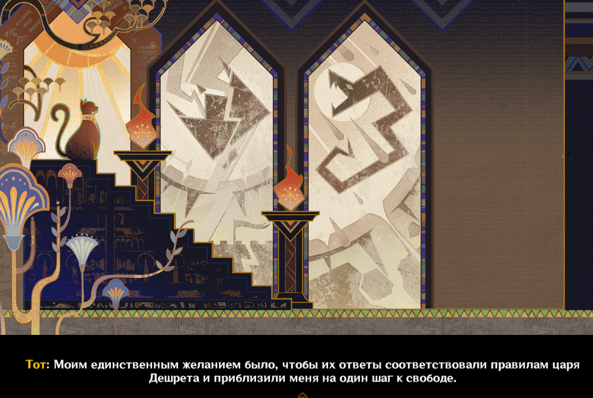 В общем как только Нефер умрёт из-за использования своей силы, дарованной котом, прямо или косвенно - не важно. В общем когда она умрёт, тогда её путь будет закончен, плита с историей Нефер появится, а кот получит свободу.